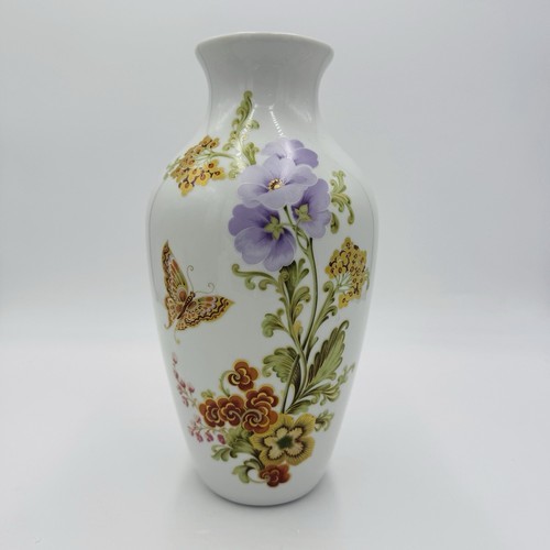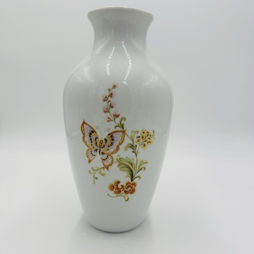 This Kaiser Germany porcelain Annabelle vase is a beautiful addition to any collection. The vase features a lovely floral and butterfly design that is sure to catch the eye of anyone who sees it. Measuring 11 inches in height and width, this large vase is perfect for all occasions and is sure to add a touch of elegance to any room.