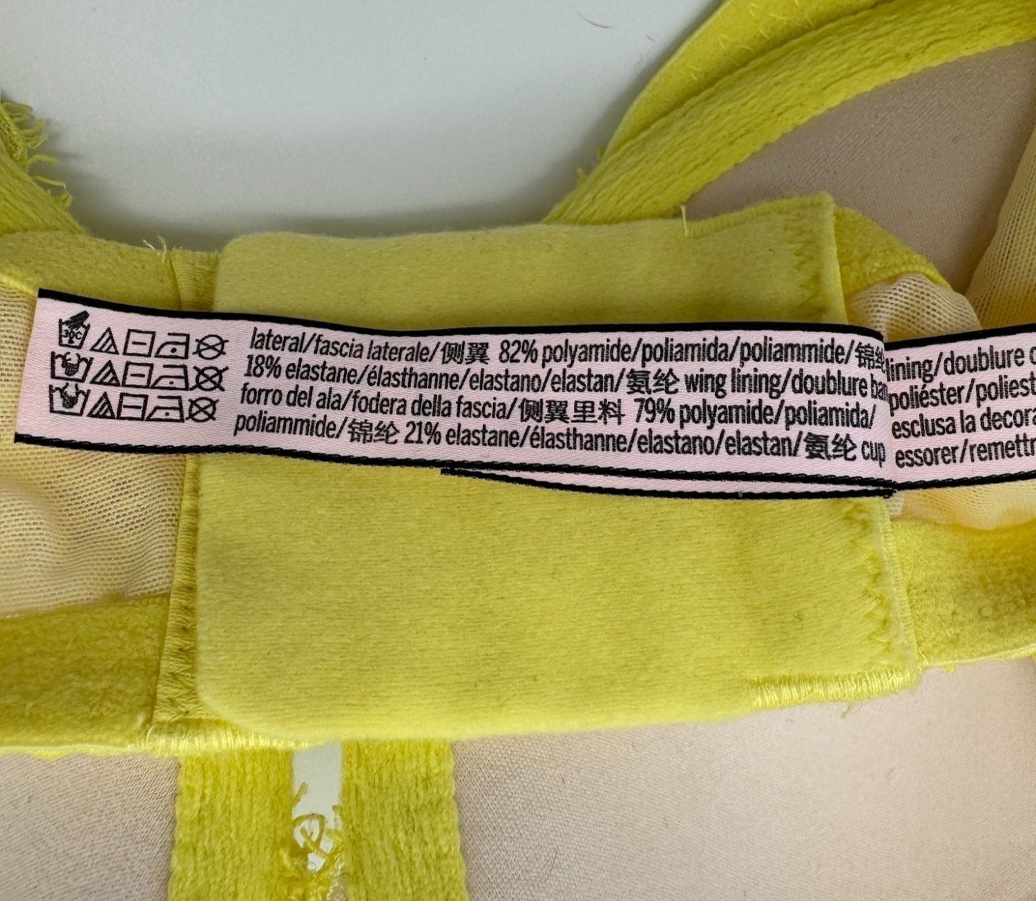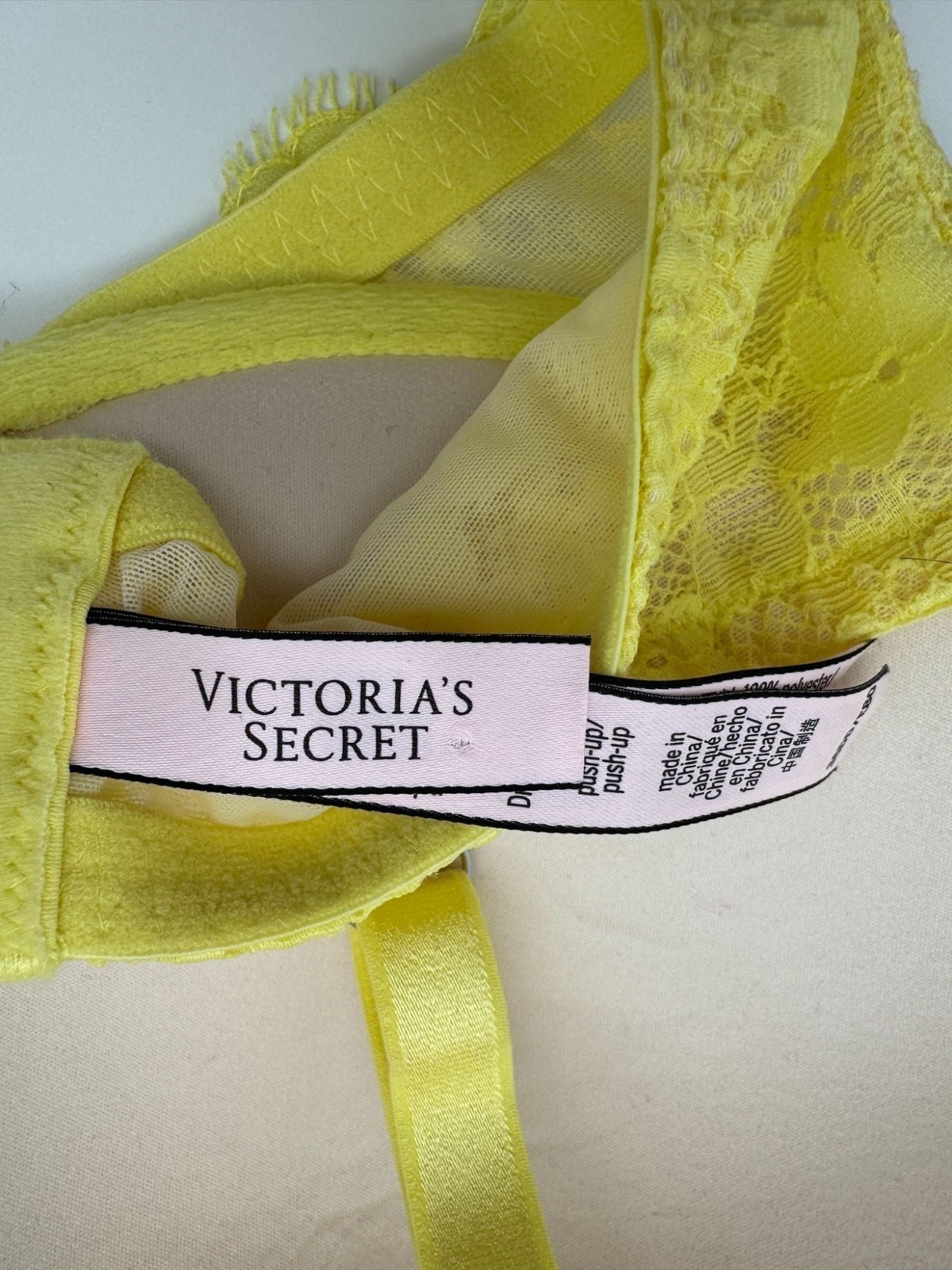 Victoria's Secret Dream Angels Push-Up Bra Yellow Lace Padded Underwire 36DD