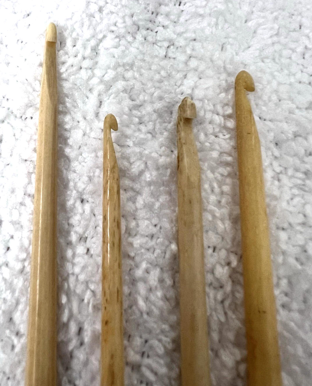 4 Four Antique Hand Carved Bone Crochet Hooks In Great Shape