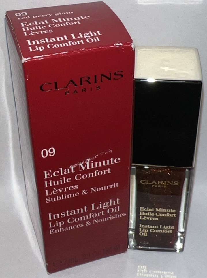 1- Clarins Instant light Lip Comfort Oil #09 RED BERRY GLAM New/RARE See Photos