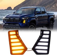 LED Fog Lights Kit Compatible with Toyota Tacoma 2024 2025 DRL Daytime Running Lights Amber Sequential Flash Turn Signal Toyota Tacoma Accessories (1 Pair