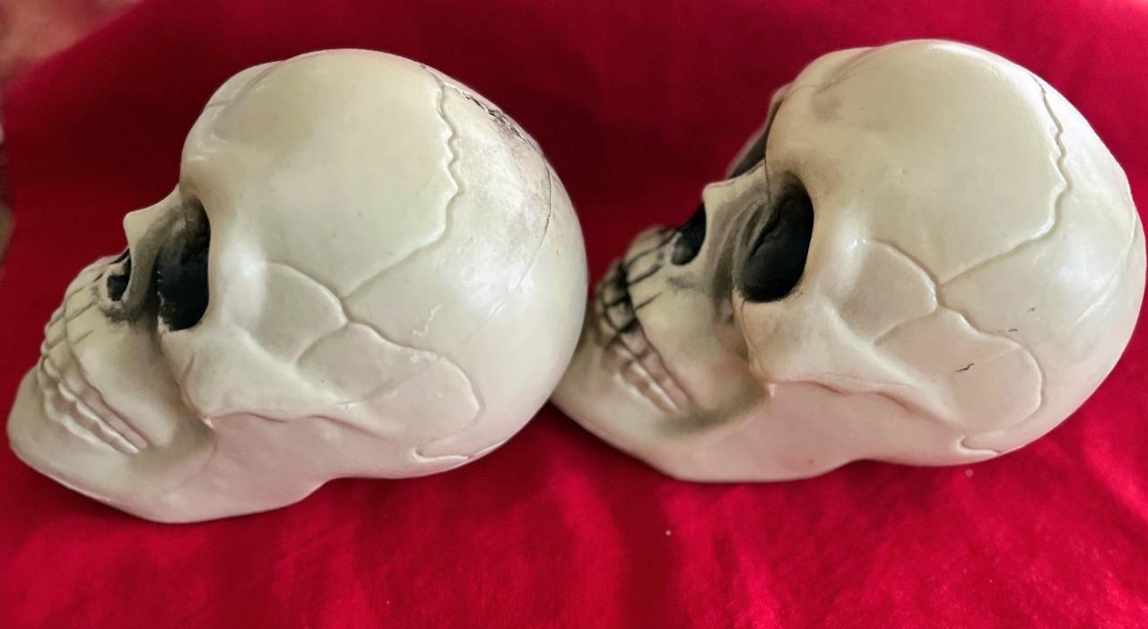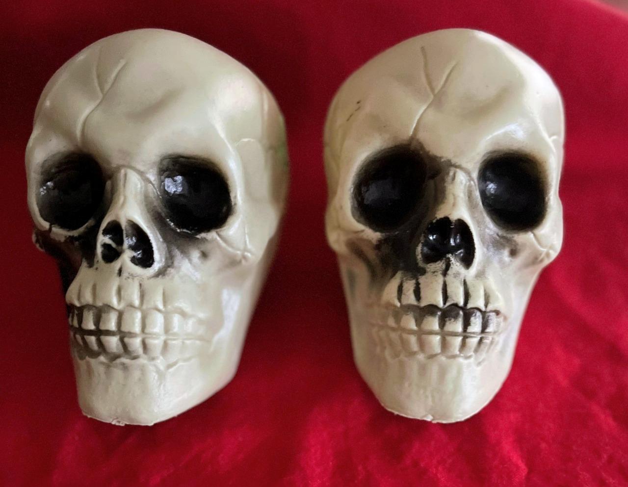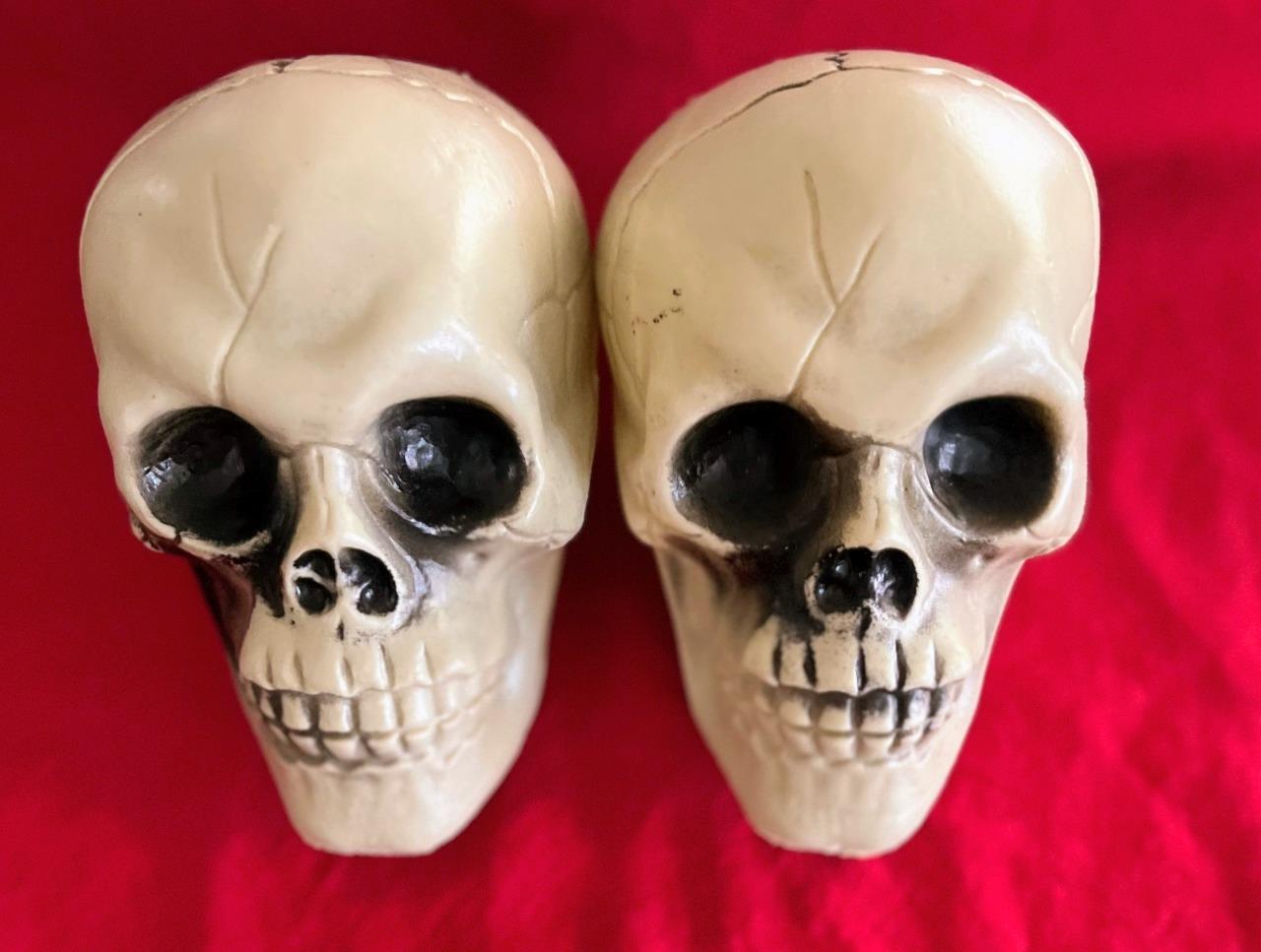 2 Halloween Blow Mold Skeleton Heads 7" Length 5" Tall Unbranded