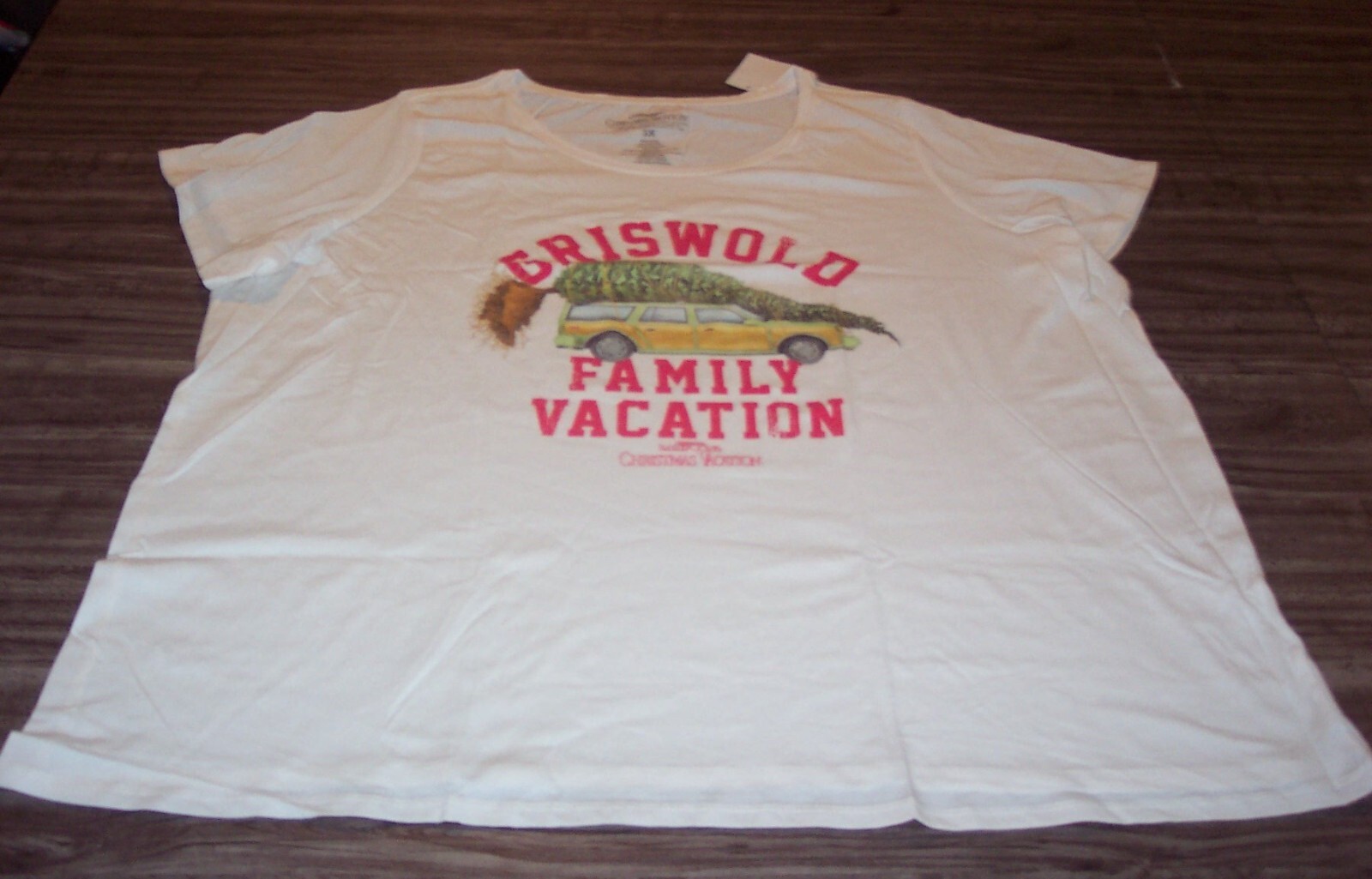 This is a Vintage Style WOMEN'S National Lampoon's GRISWOLD CHRISTMAS VACATION T-shirt. It is a Plus Size 3XL and is NEW with the tag. It is 28 inches from armpit to armpit and 32 inches in length. The print is made to look vintage. Combine auctions to save on shipping. D2AG