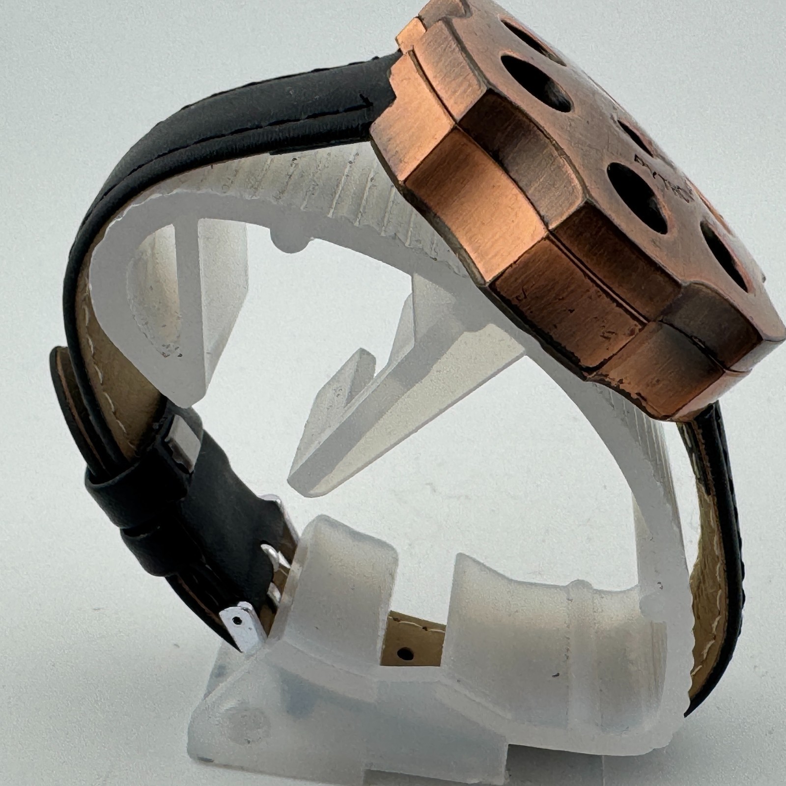 VTG Python 45 Calbre Parmex Quartz Watch Men Bronze Leather Analog New Battery