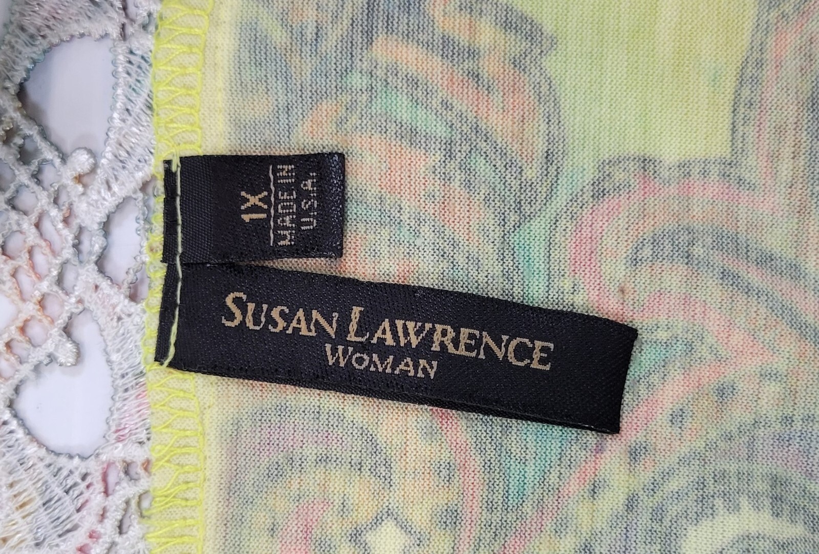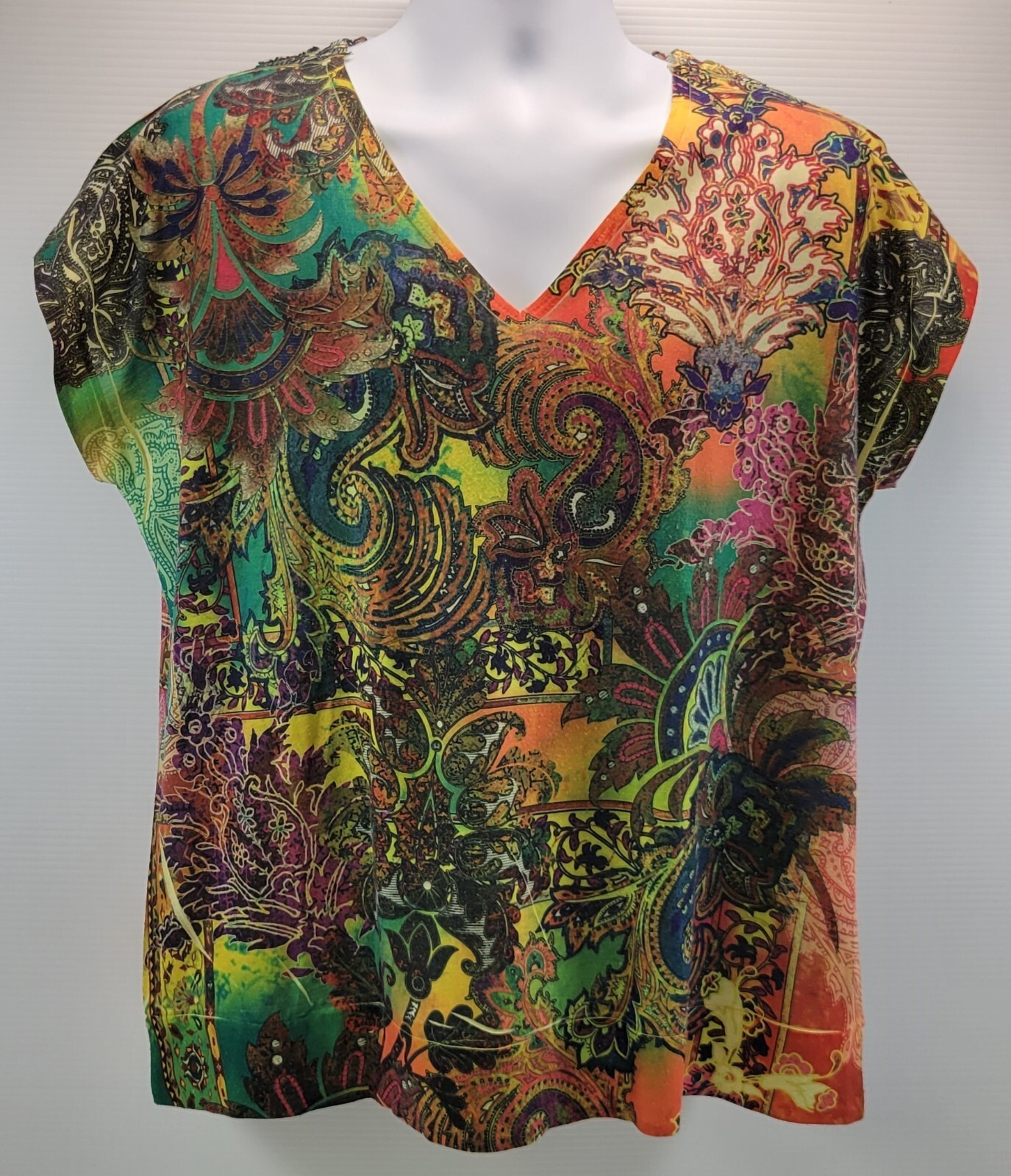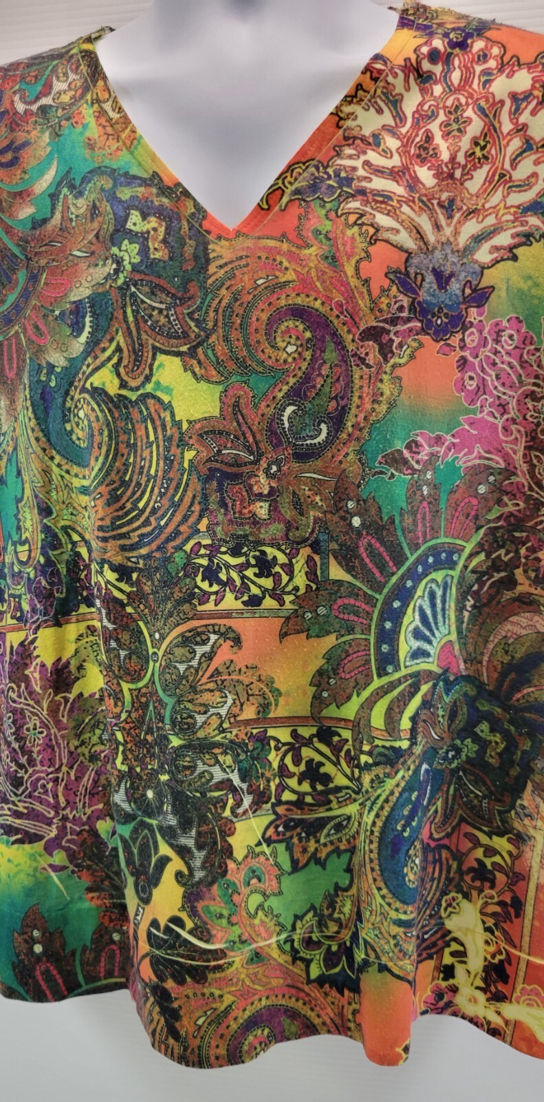 L) Susan Lawrence Woman Paisley Abstract Graphic Colorful Shirt Top 1X