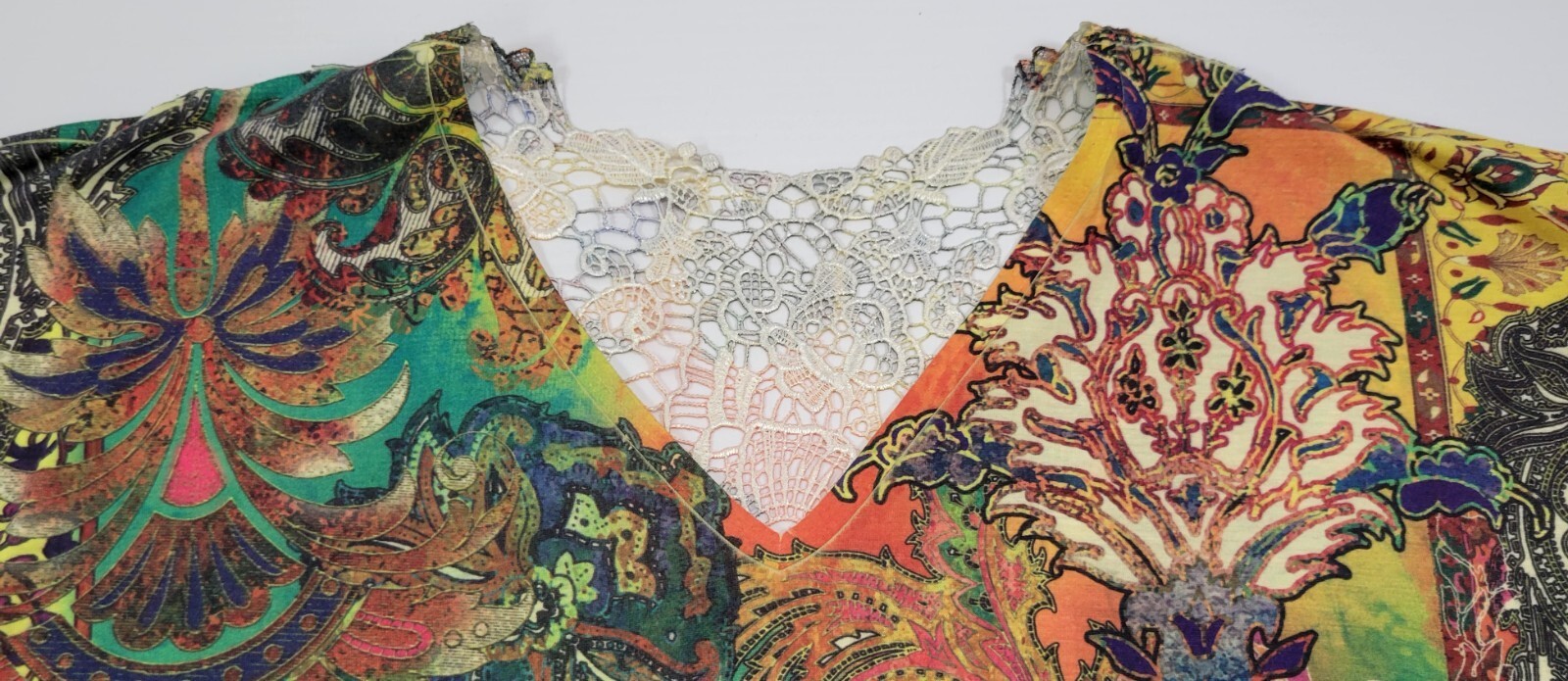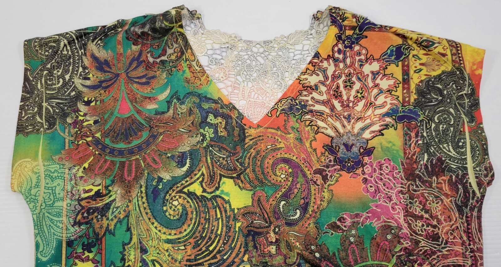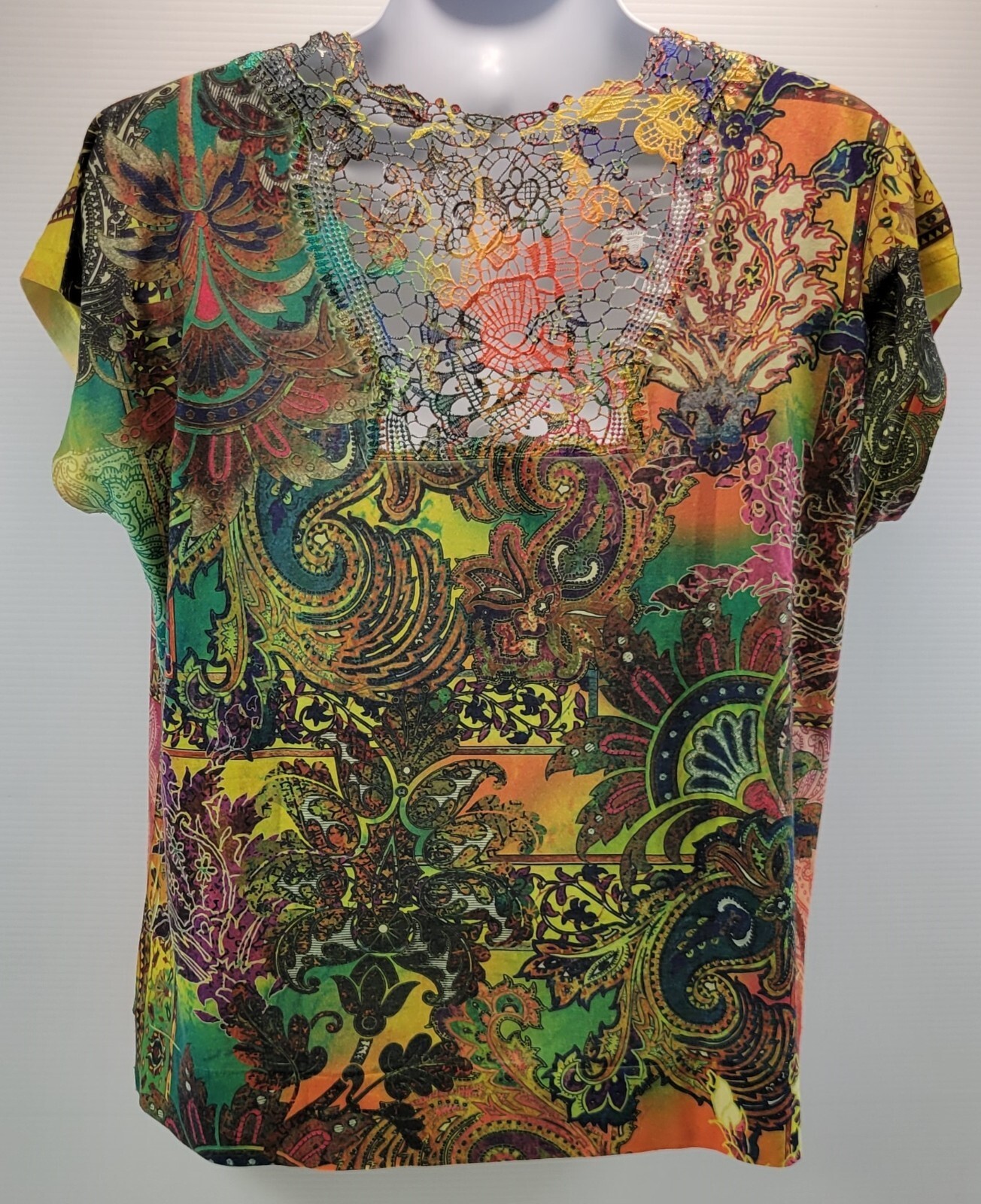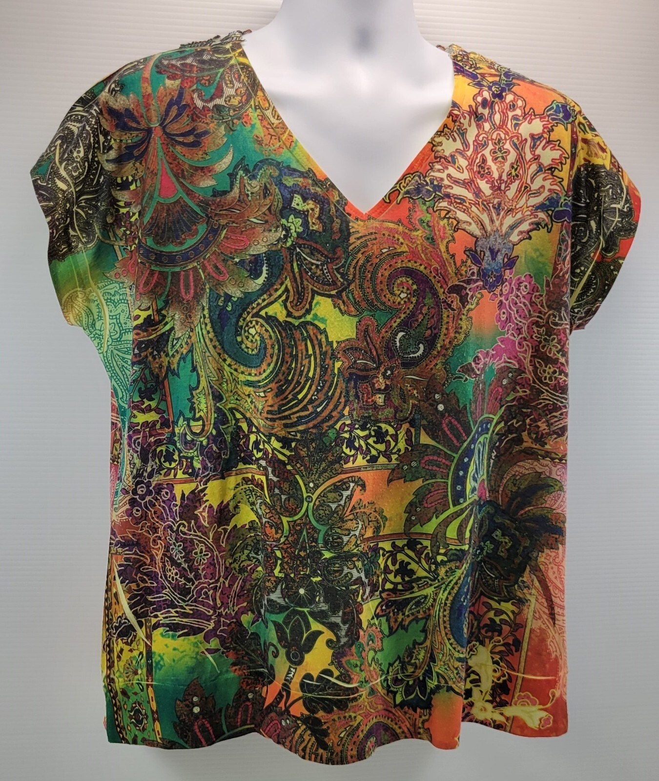 Susan Lawrence Woman Paisley Abstract Graphic Colorful Shirt Top