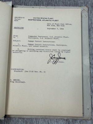 WW2 US Atlantic Fleet Destroyers Damage Control Instructions Book 1944 US Navy