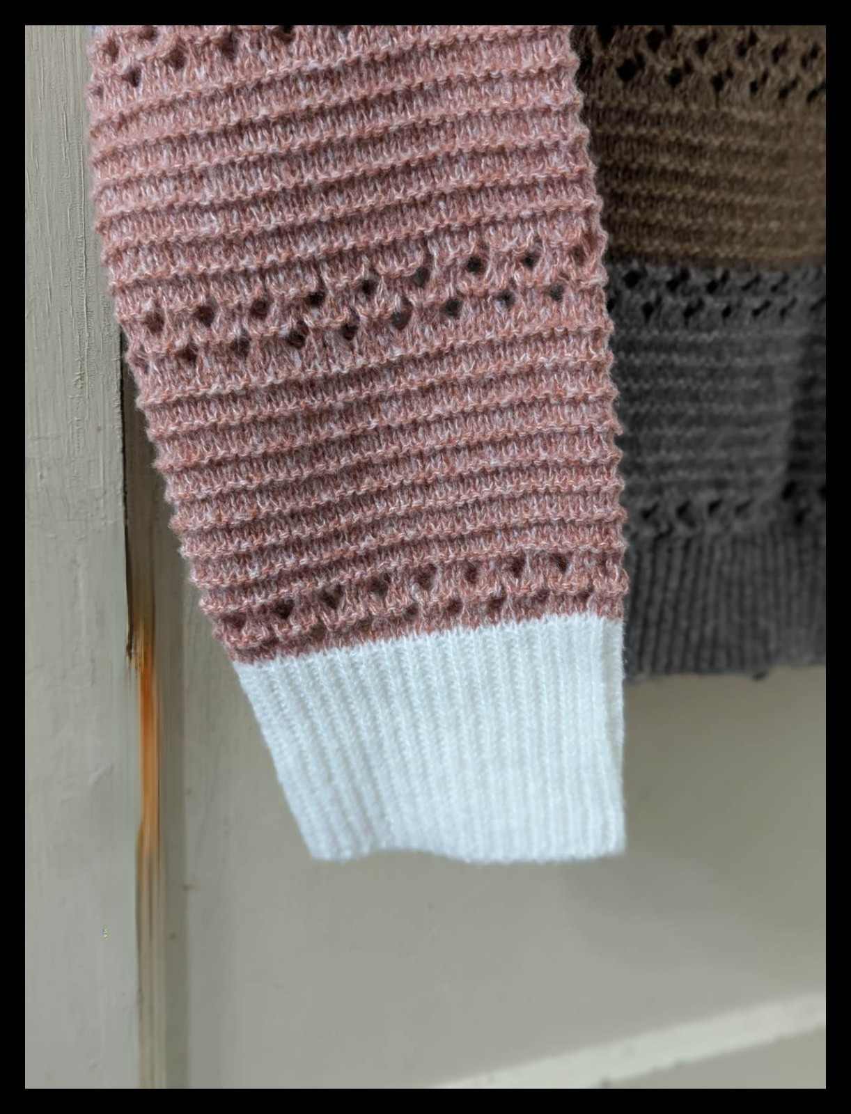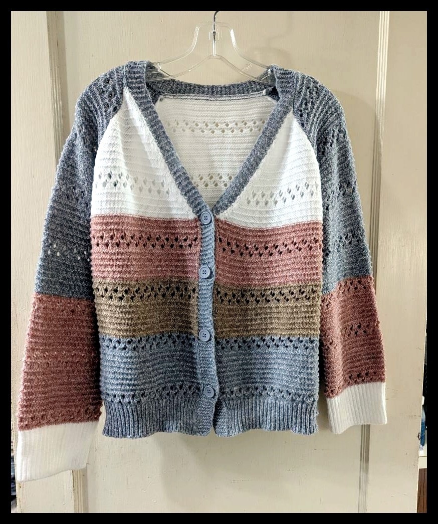 ** Beautiful Sweater with colors of White, Pink, Light Brown Bluish Gray