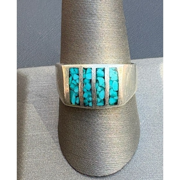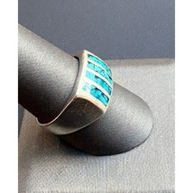 VINTAGE MEN'S 925 STERLING SILVER AND TURQUOISE INLAY RING SIZE 9.5 SKY