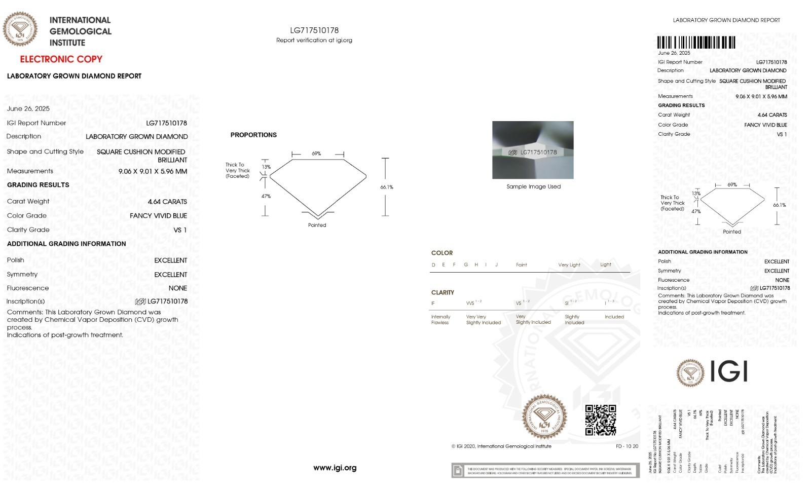 4.64 Ct CUSHION Fancy Vivid Blue IGI and 50 similar items