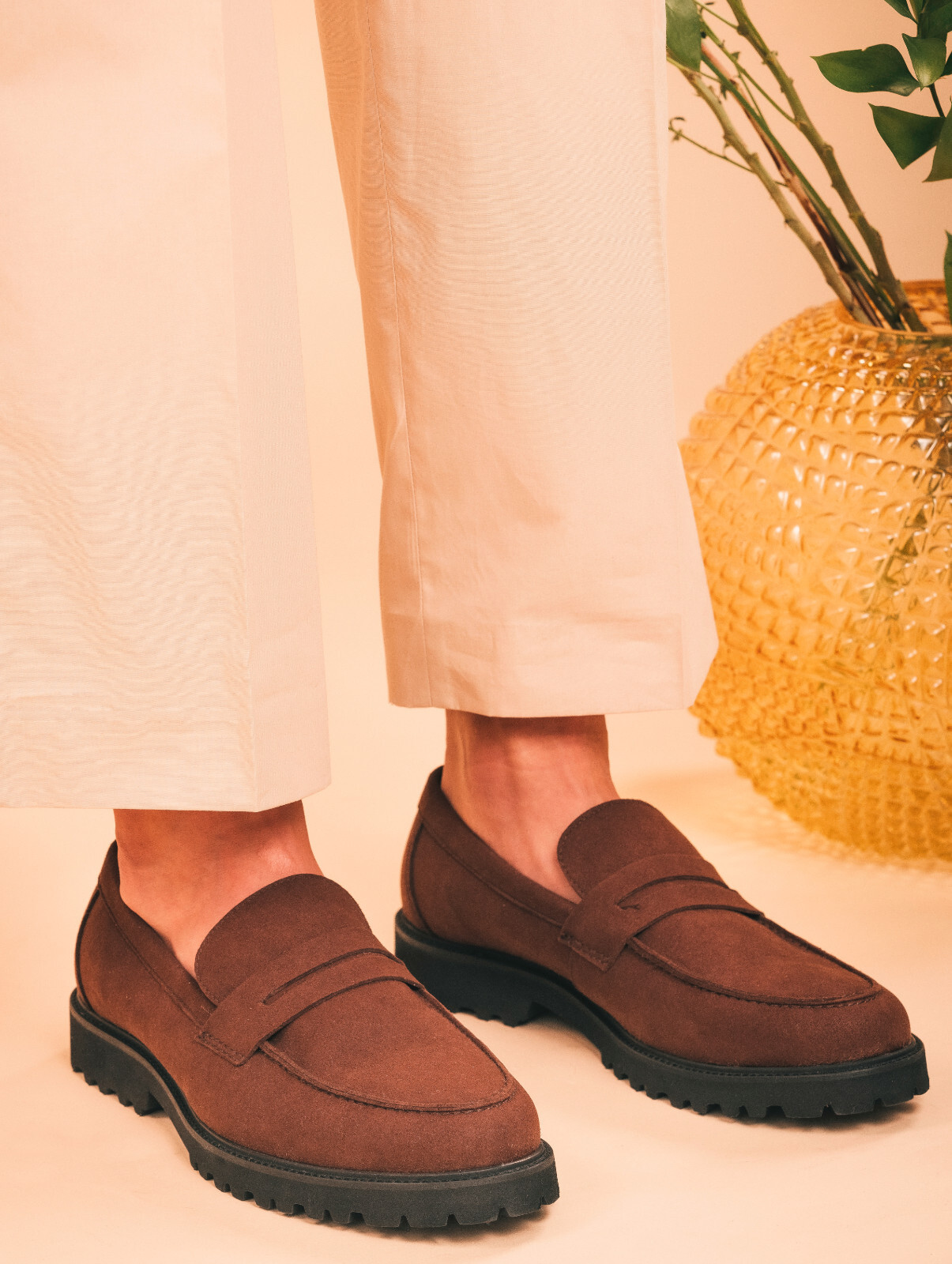 Vegan shoes penny loafer mocassin casual crafted from sude microfiber breathable
