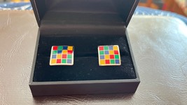 David Donahue 925 Cufflinks sterling colored checks cuff links used condition