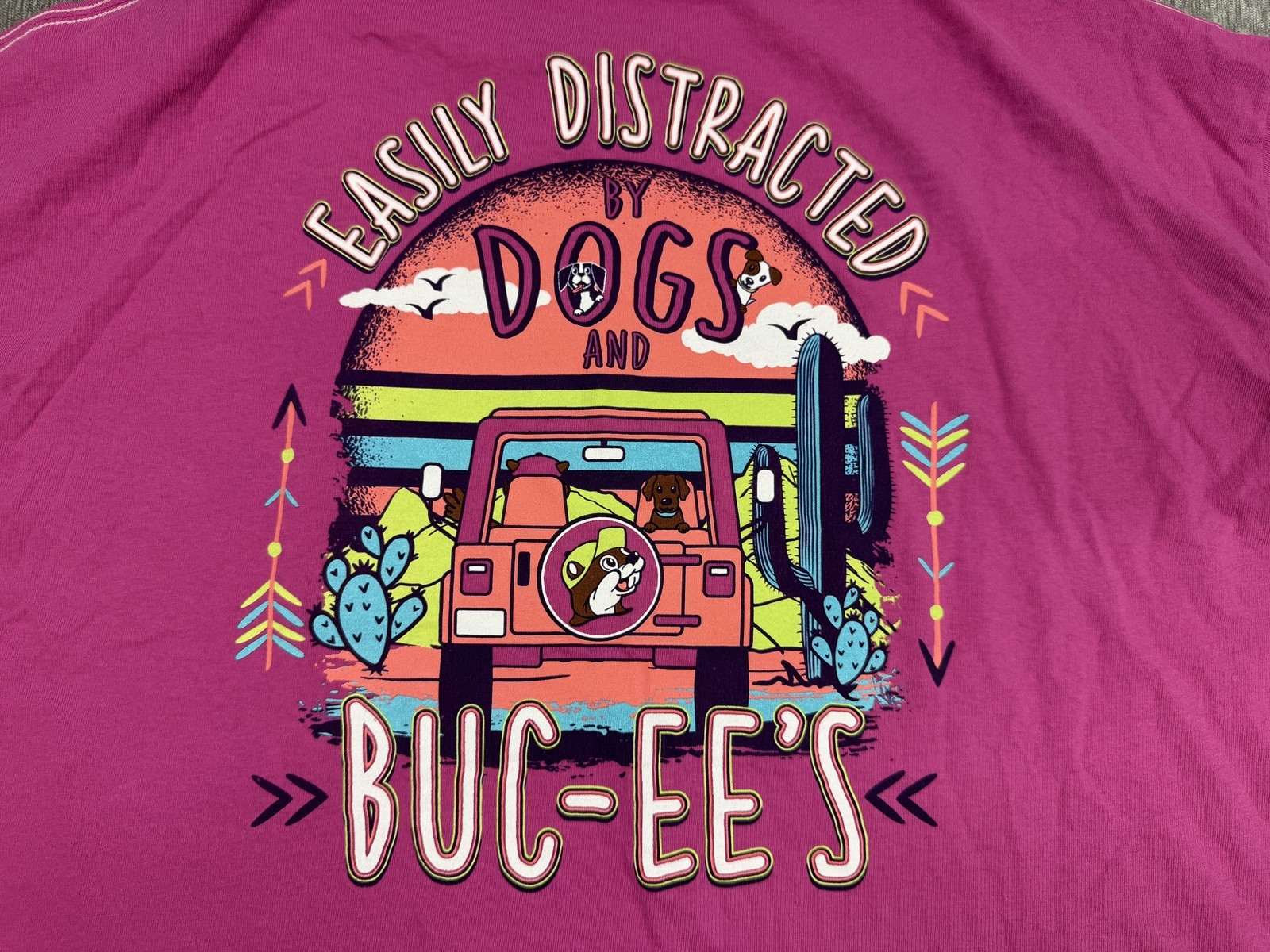 Buc-ee's Shirt Womens Extra Large Pink Easily Distracted By Dogs Graphic Tee