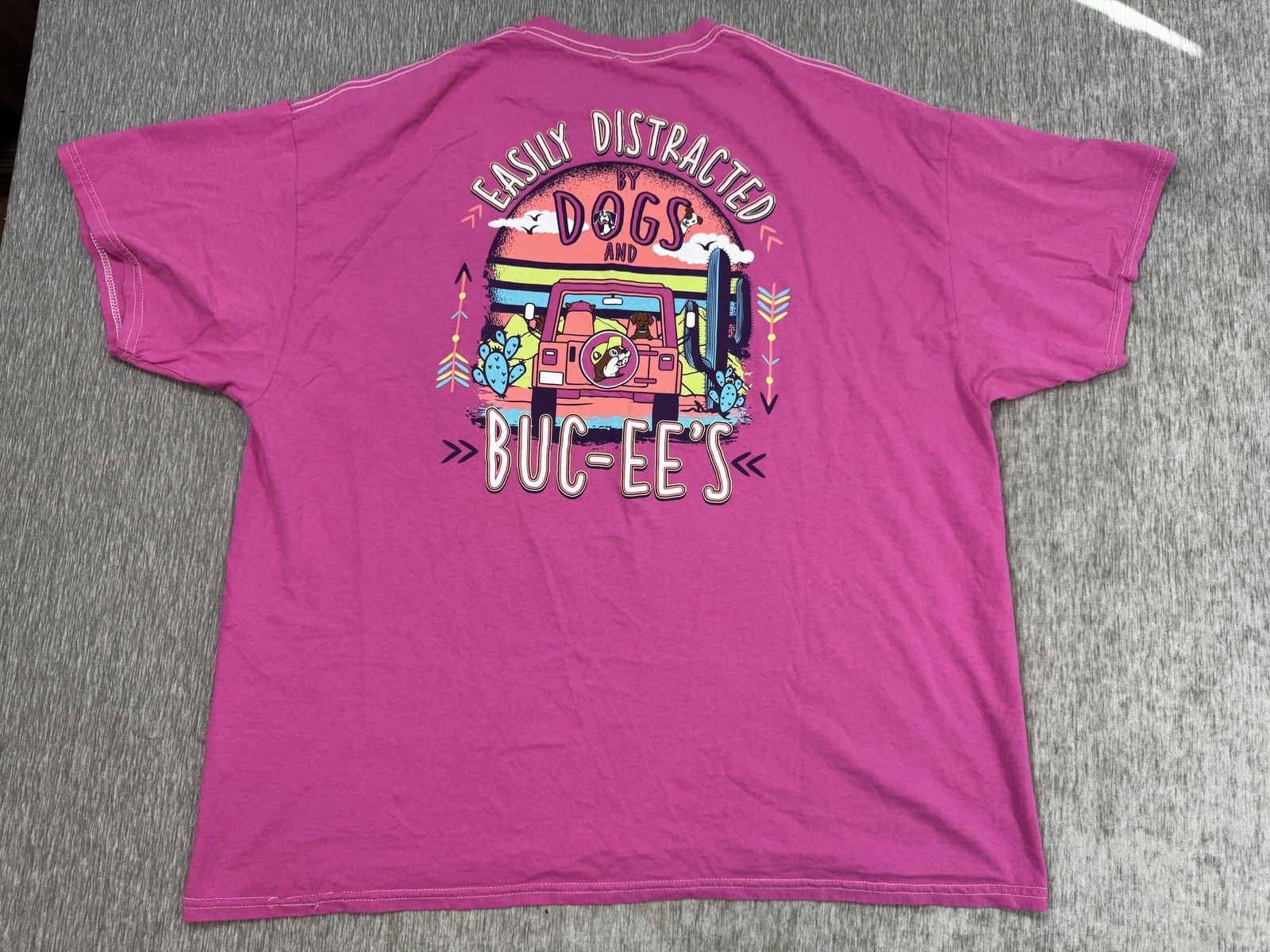Buc-ee's Shirt Womens 2XL Pink Easily Distracted By Dogs Graphic Tee Travel