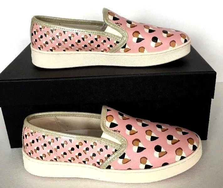 New Coach Style C117 FG2113 Slip on Heart Print Women's Shoes Size 6 B Blush