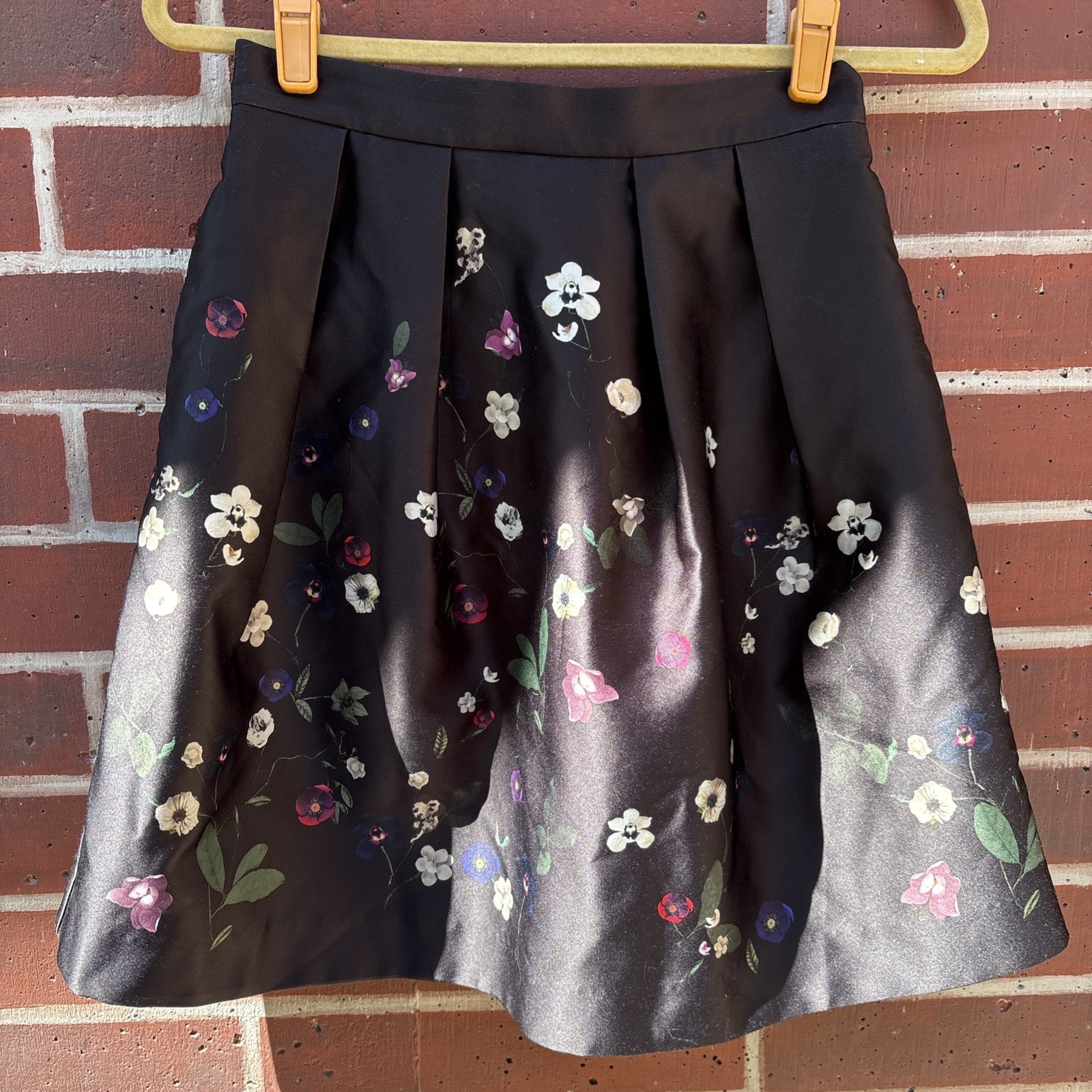 H&M Flare Skirt Womens Size 6 Black Wild Flowers Pleated Mini High Waist Pockets