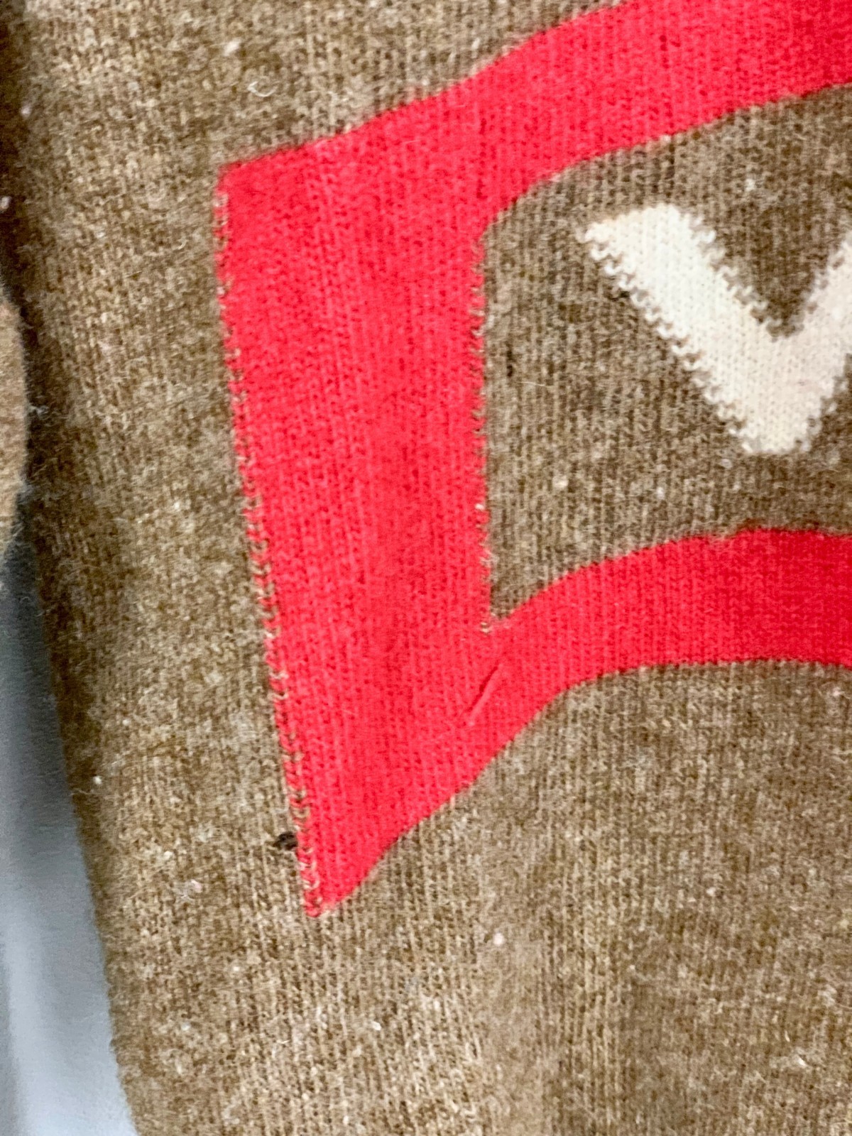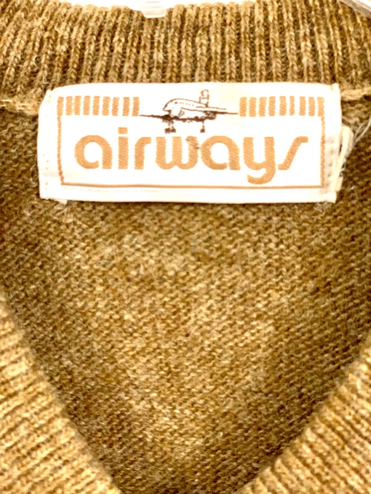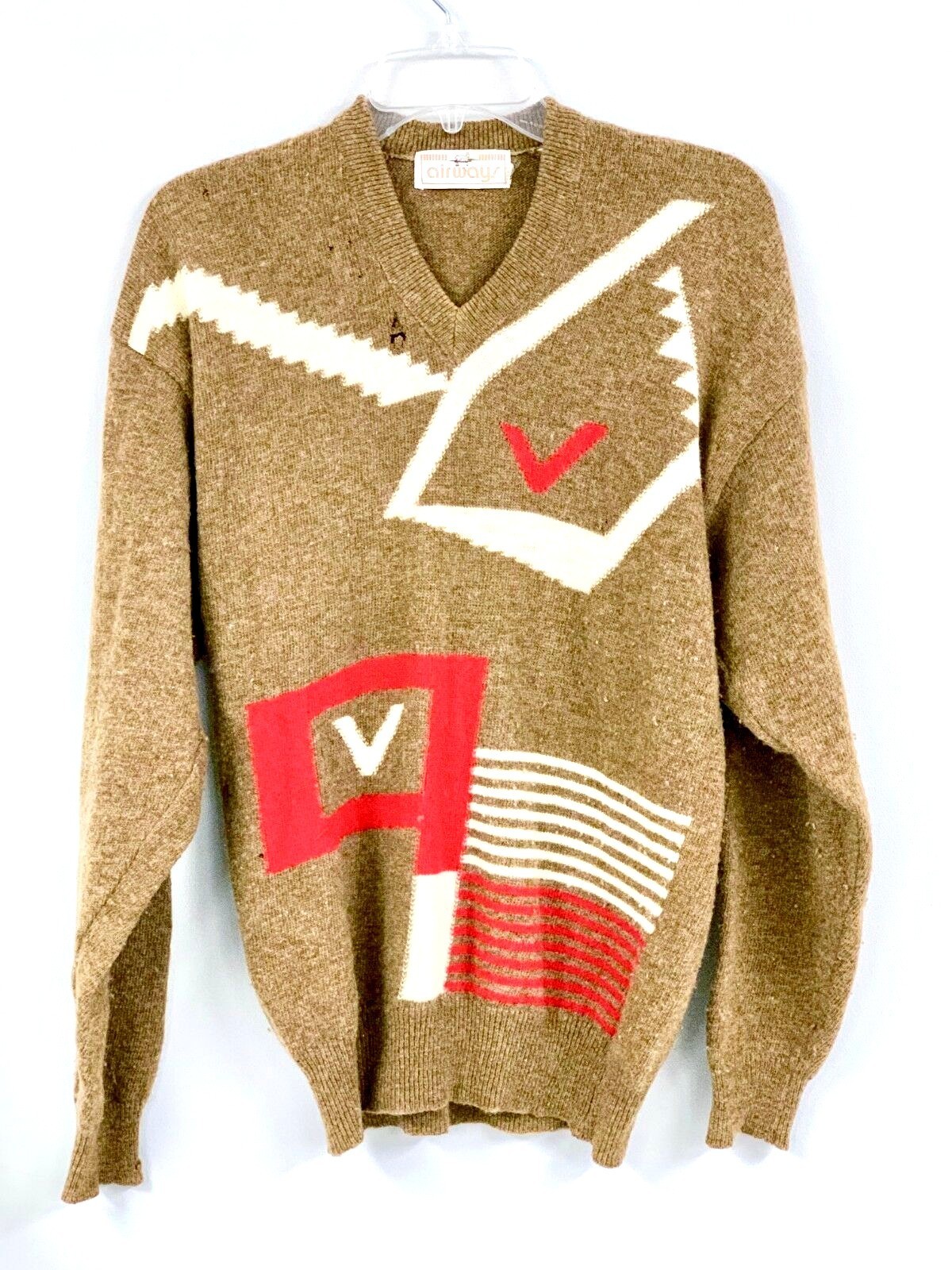 VTG RETRO 70s Mens Airways Brand V Logo Pullover Sweater 38 M Brown Red