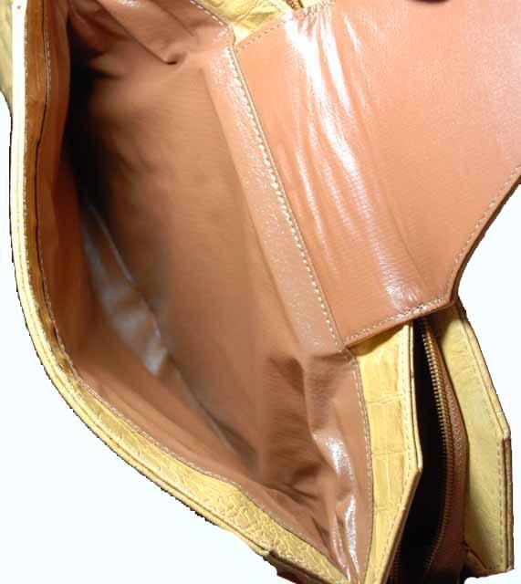 Vintage RETRO Purse Leather Clutch Bag Camel Caramel Alligator Finish 1970S