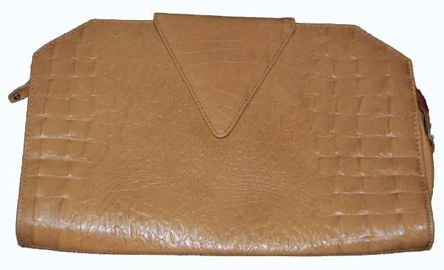 VINTAGE TAN LEATHER CLUTCH ALLIGATOR FINISH 1970'S