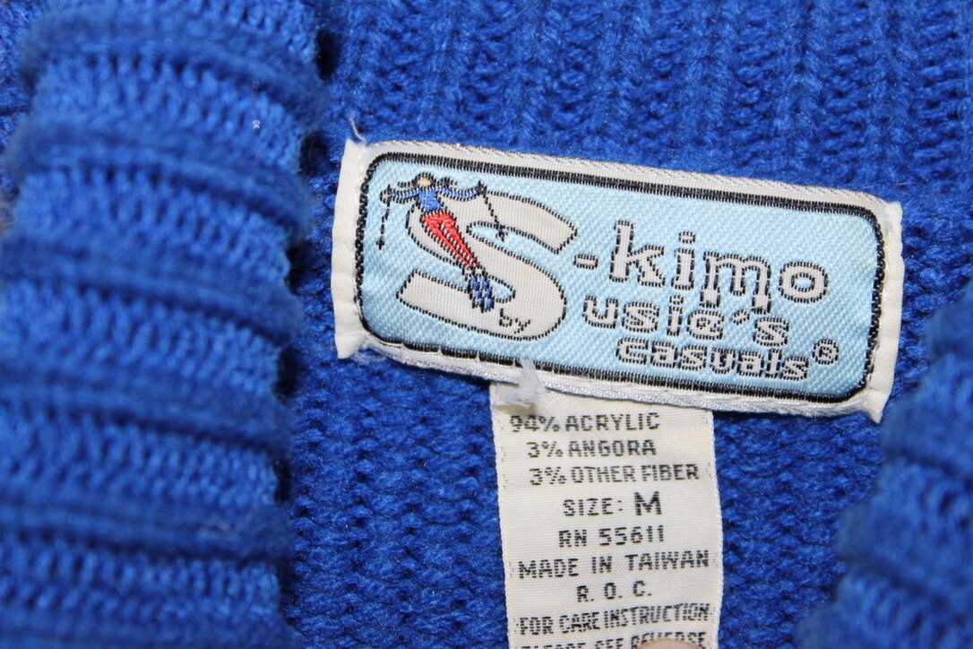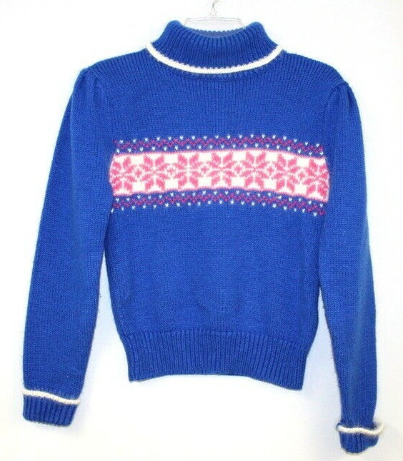 VTG RETRO 80s Ski Sweater S-Kimo by Susie Snowflakes Acrylic M Blue