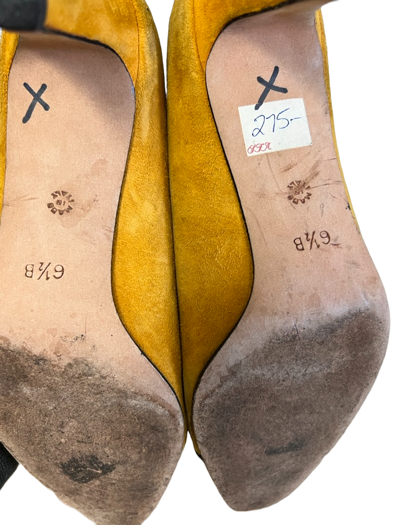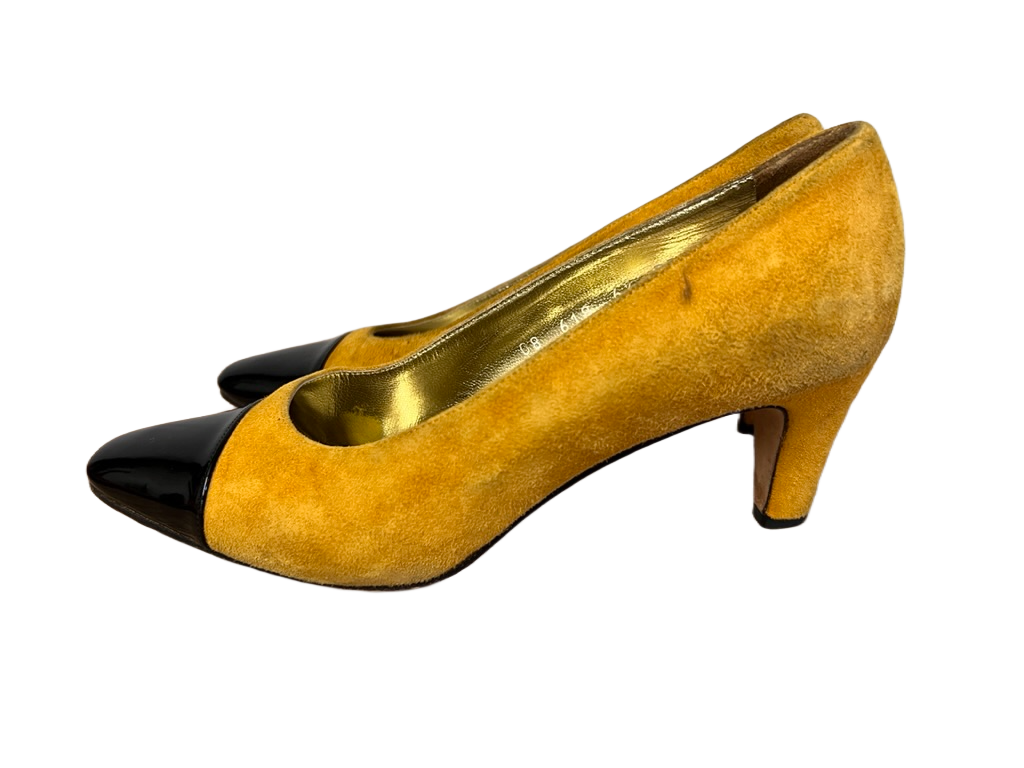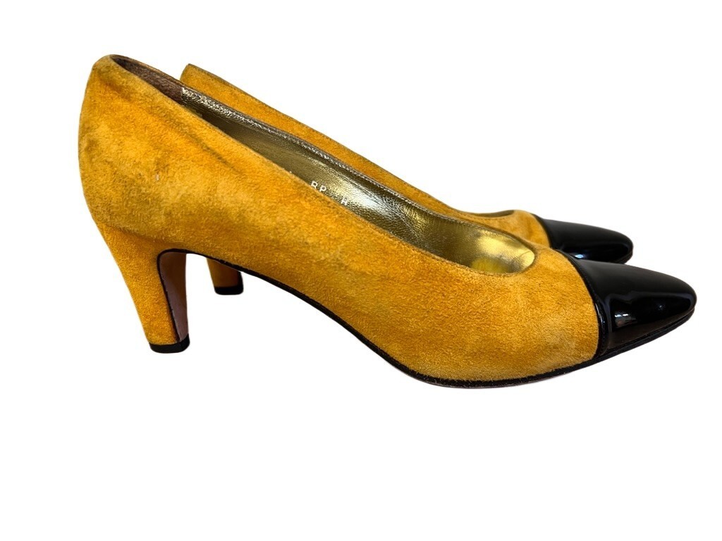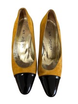 Retro St. John Gold Suede /Black Patent Cap Toe 80s Pumps Vintage Sz 6.5B EUC