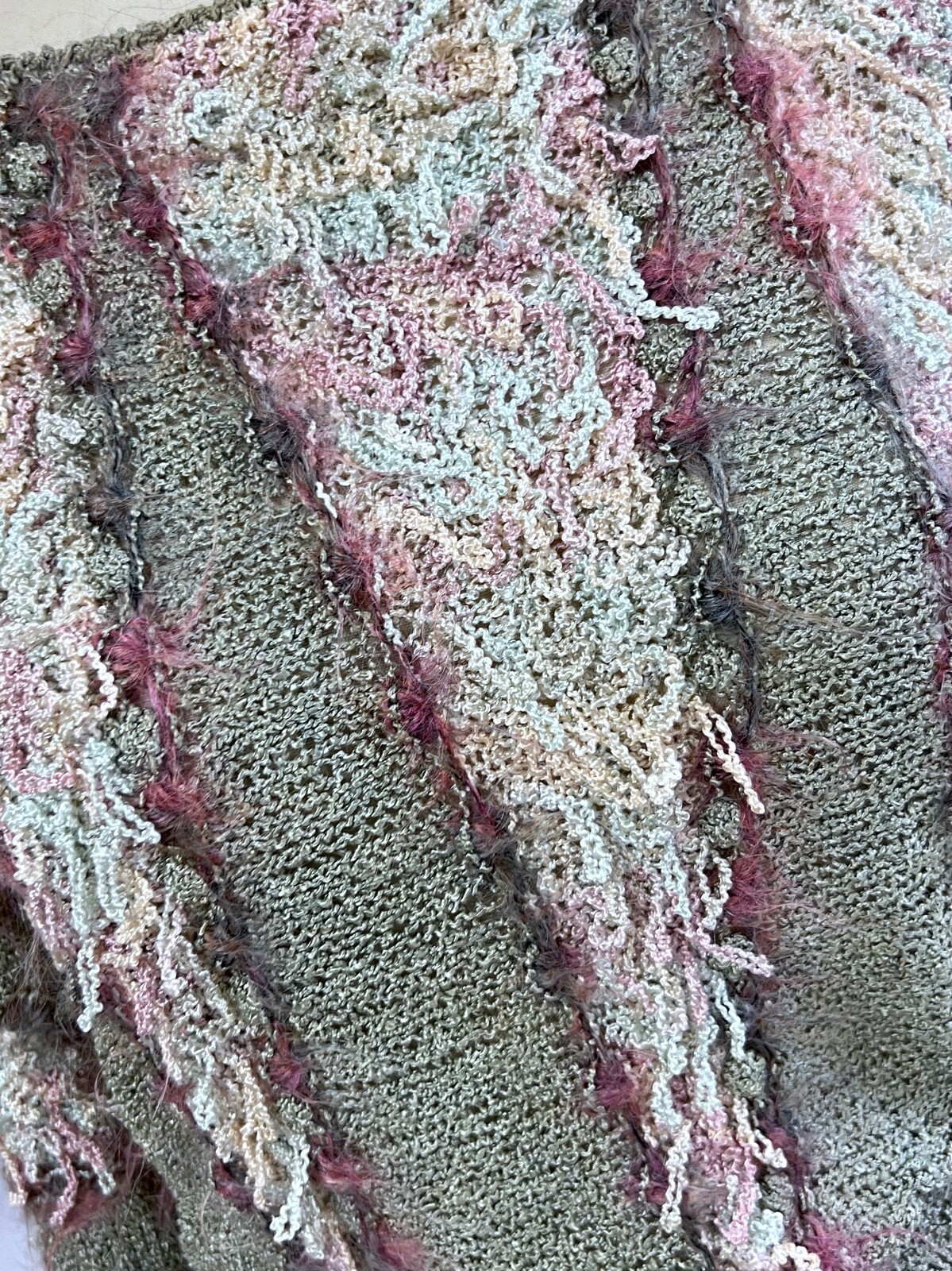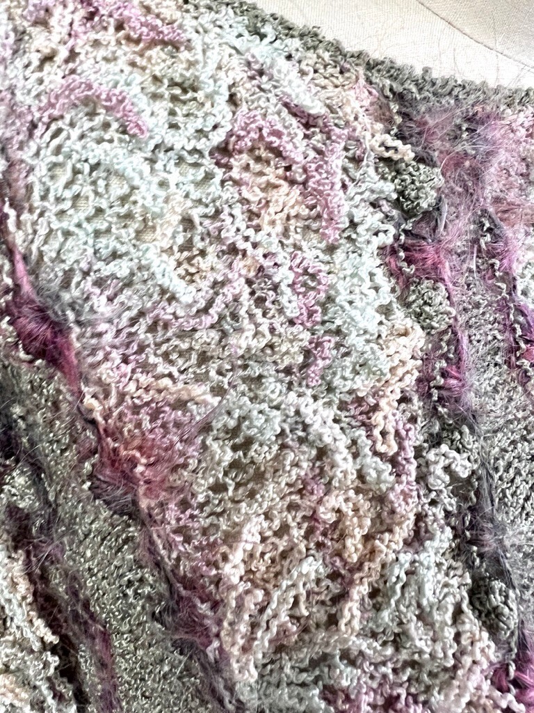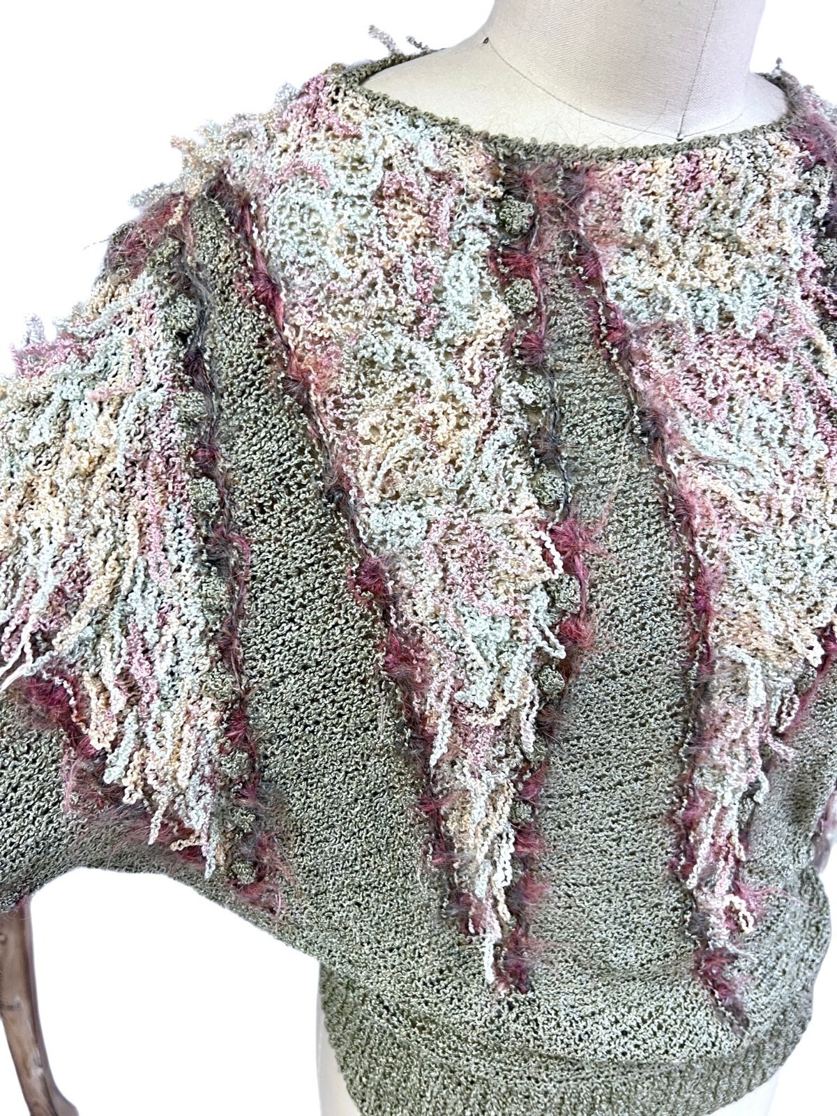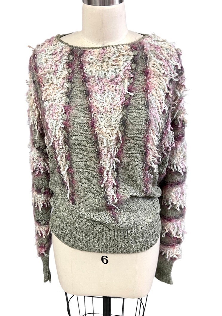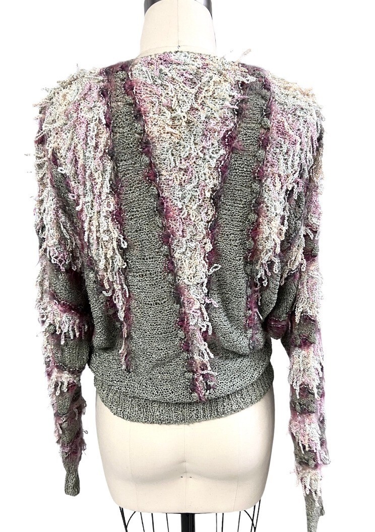 vtg Retro Colleen Toland San Francisco Sweater Sz S hand knit Fringe Pastels ART