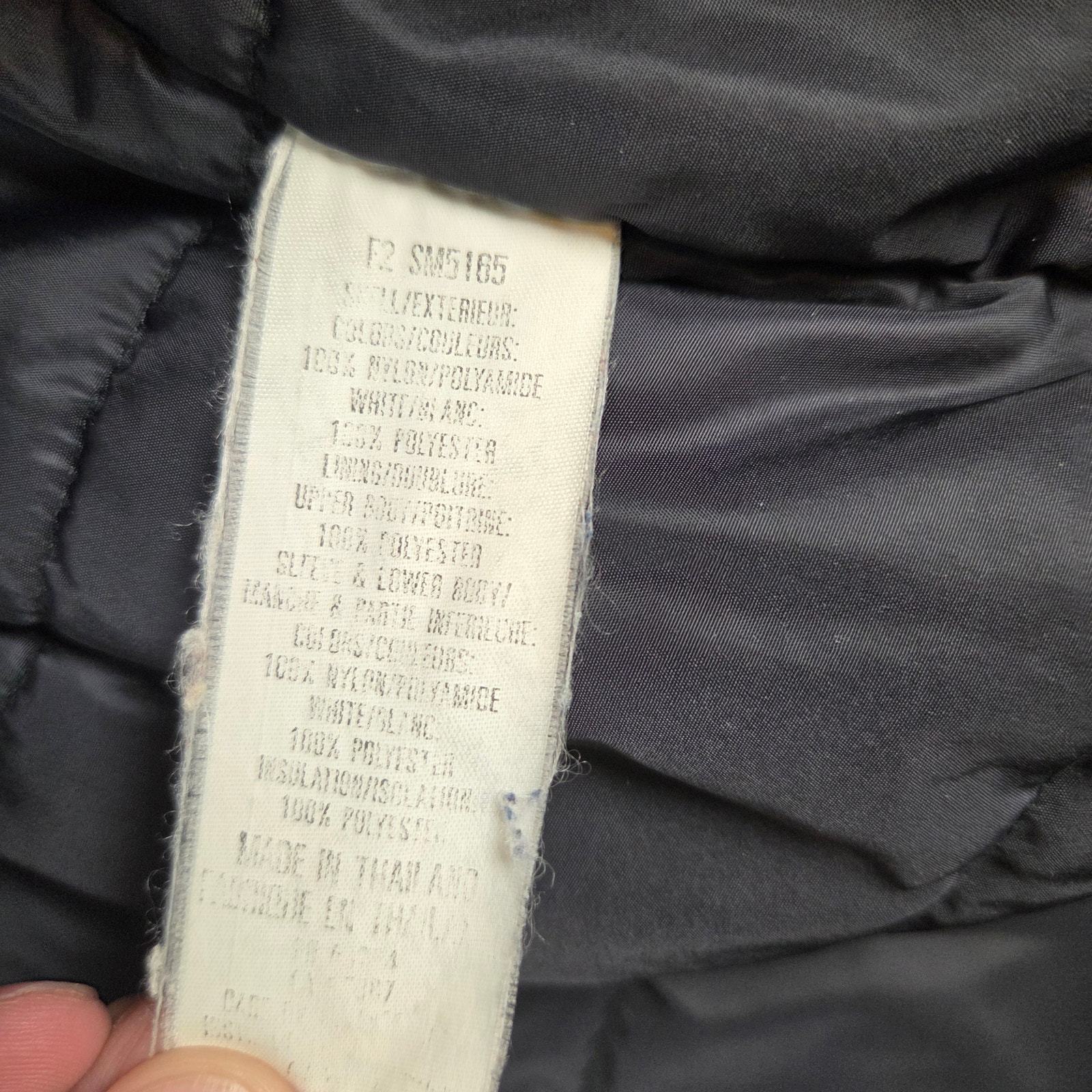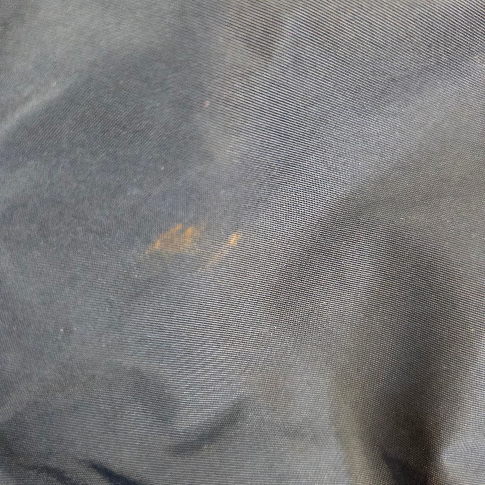 The jacket is structurally intact, but the main front zipper is broken and does not function. Other zippers work fine. There are also visible stains/marks on the exterior fabric. Jacket is being sold as-is for repair or for vintage streetwear styling.