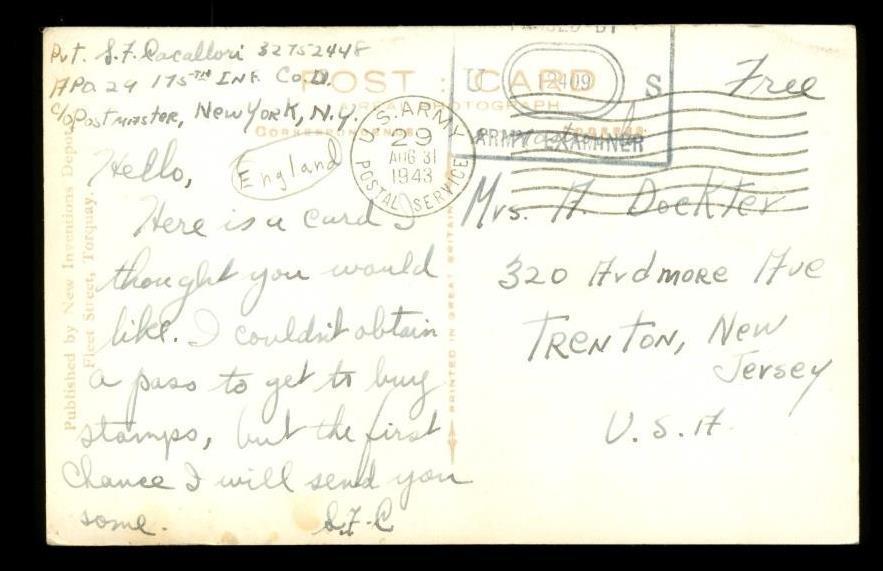 WWII 1943 RPPC Photo Postcard Babbacombe Downs Beach Torquay US Army Free Frank