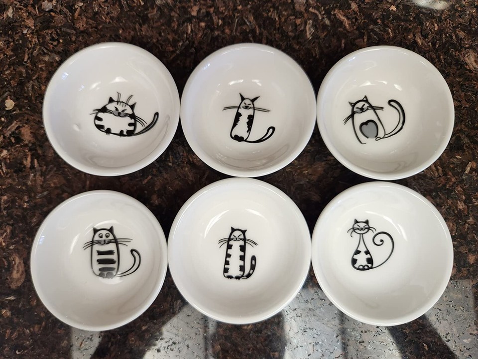 SOCOSY Super Cute Cat Ceramic Sauce Dipping Bowls 6 Pack 2.87 x 2.87 x 0.79 in