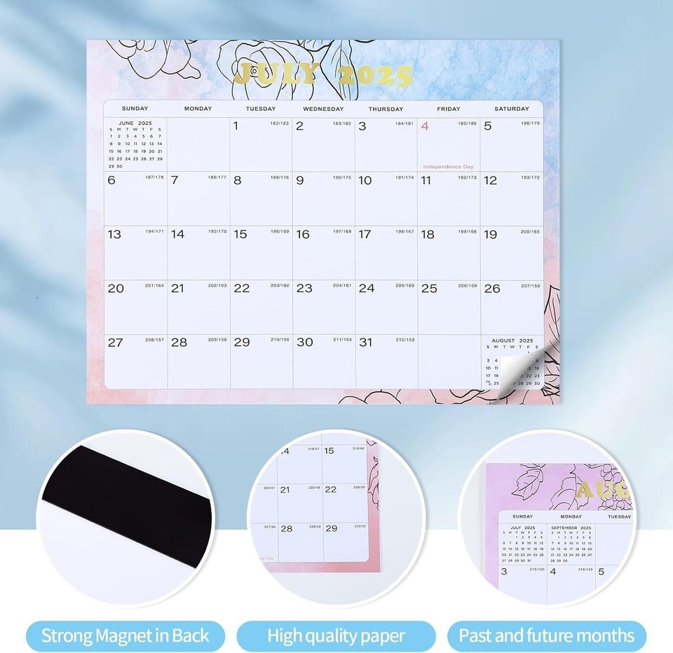 Premium Quality: Crafted from ultra-thick premium paper, our fridge calendar 2024-2025 ensures a hassle-free writing experience without any ink bleed-through issues. The robust magnet ensures effortless attachment to your fridge and other metal surfaces, providing convenient access to your calendar.
