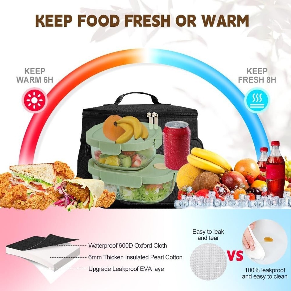 [LARGE CAPACITY]: The 12L large adult lunch bag can hold at least 16 cans of coke or 3 lunch boxes + 2 cans of coke + some other personal items. The women lunch box is enough to hold your food needs for a day, suitable for picnic, camping, hiking, barbecue, work, travelling and other activities during the day