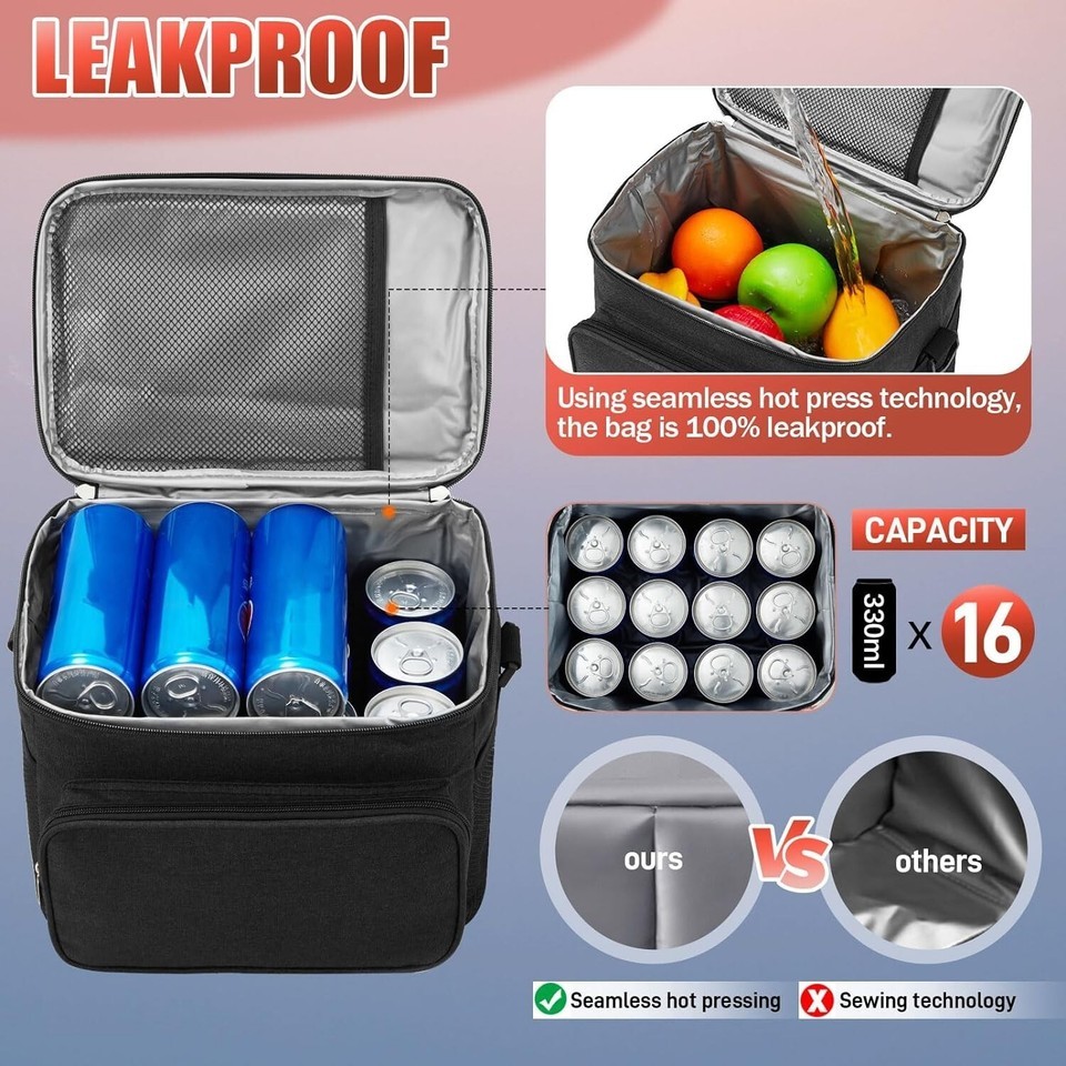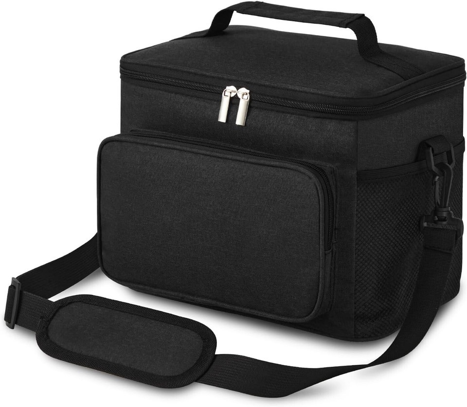 Lunch Bag for Men and Women 16 Can Insulated Lunch Box Soft Cooler (10L, Black)