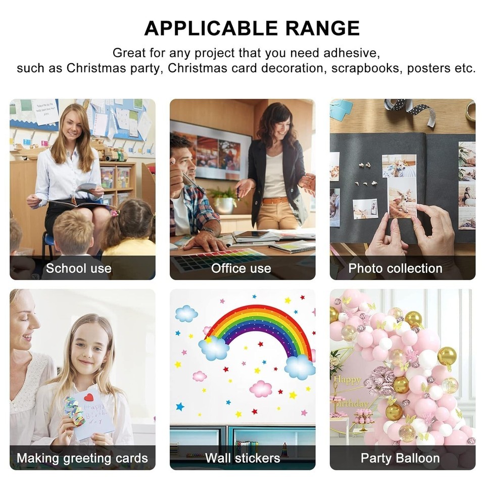 ?High Quality Adhesive?-Double-sided tape has a strong adhesive, can be tear by hand, oil paper easy to peel off, keep for a long time, suitable for all kinds of surfaces and occasions such as: paper cards are very suitable for office supplies or DIY.