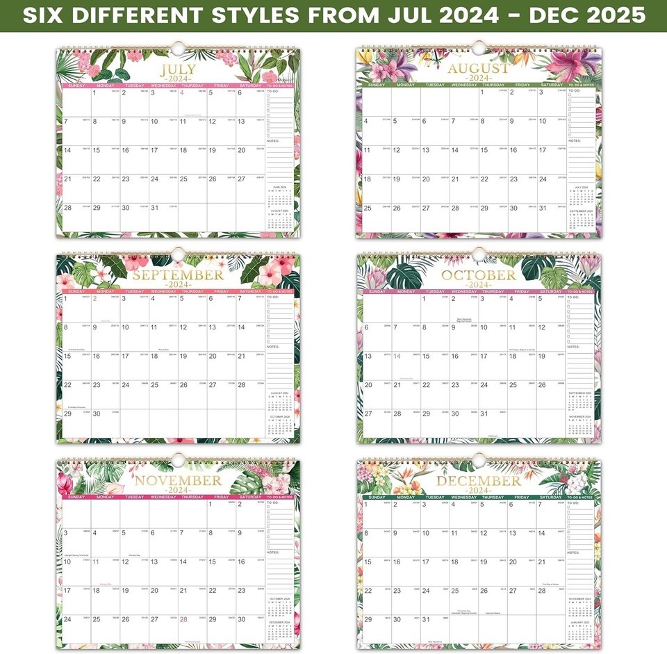 Wall Calendar JUL 2024 - DEC 2025, Calendars for 2025, 15" x 11.5", 2025 Wall