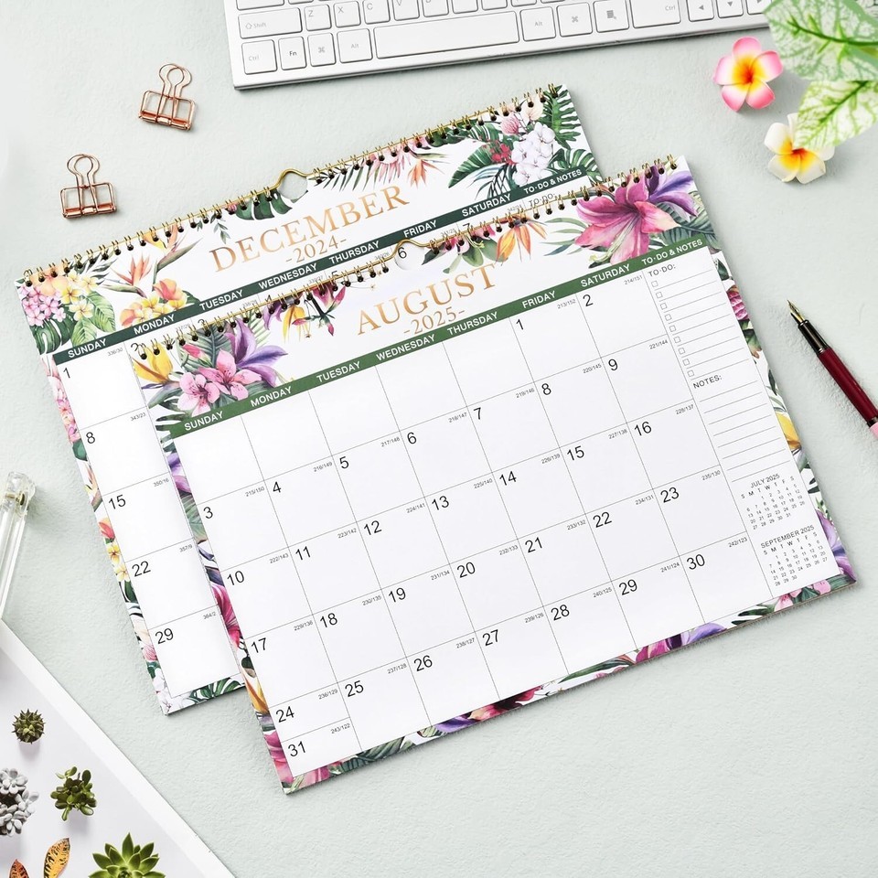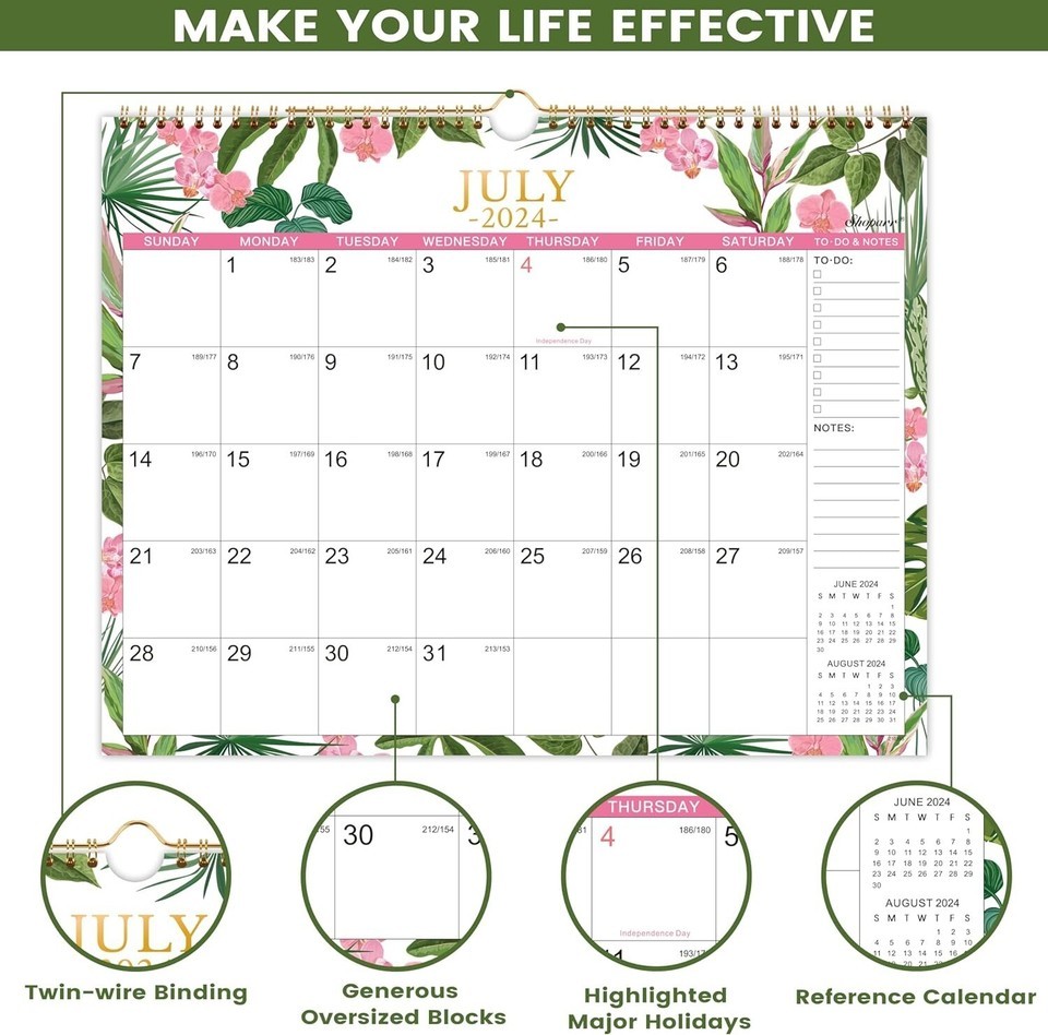 FUNCTIONAL DETAILS - Strong twin-wire binding for turning pages of wall calendar 2024-2025 easily + Hanging hook + Ruled daily blocks with large writing space for daily scheduling.