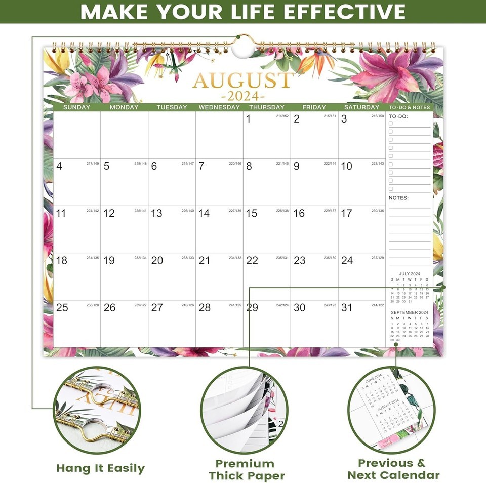 MAKES YOUR LIFE Efficient and Easy - Perfect tool to make your life effective. Utilizing this wall calendar 2024-2025, you can be easily know every important day and write down notes, ideas, meetings, appointments, etc.