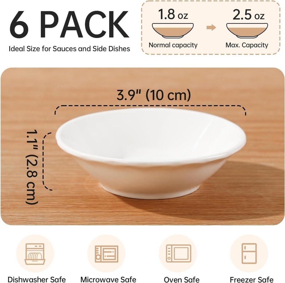 Sauce Dish Ceramic Dipping Bowls 3.9" Small Sauce Dishes (Set of 6) 2.5 oz