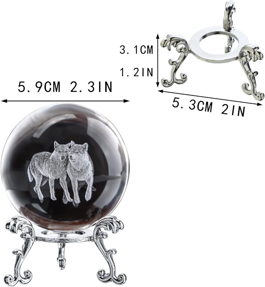 ZEERSHEE 60mm Wolf Crystal Decor Ball with Stand 3D Glass Laser 1.2" W * 2" L