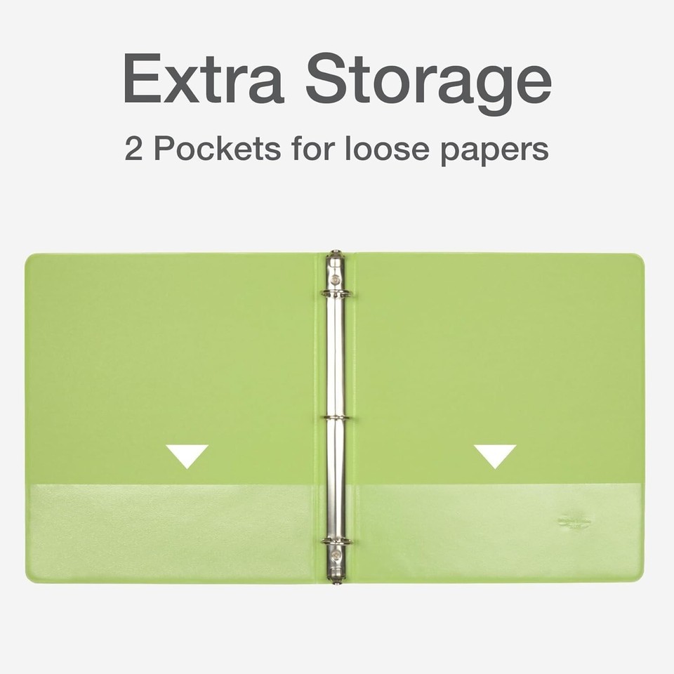 Binders are functional but also fit your need for colorful fun; two-tone binders have a splash of pastel color inside; a classic and stylish look keeps you organized for class, home or office