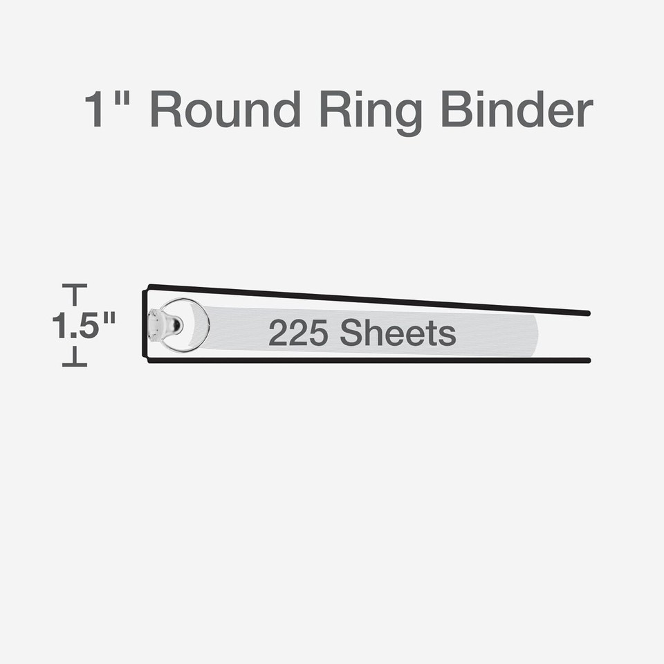 Each 1 inch binder has sturdy binder rings that hold 225 sheets; two clear interior pockets store handouts and small, loose documents