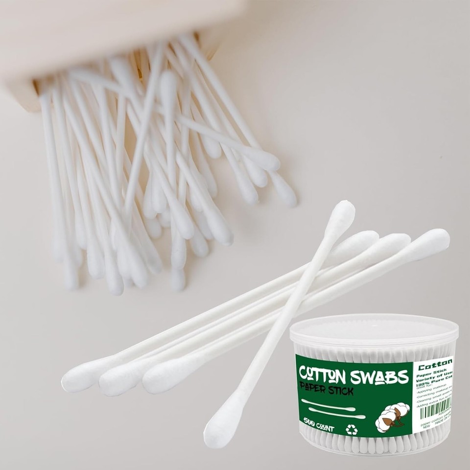 Cotton Swabs with Paper Sticks 500ct, Double Tipped Natural Cotton Buds.