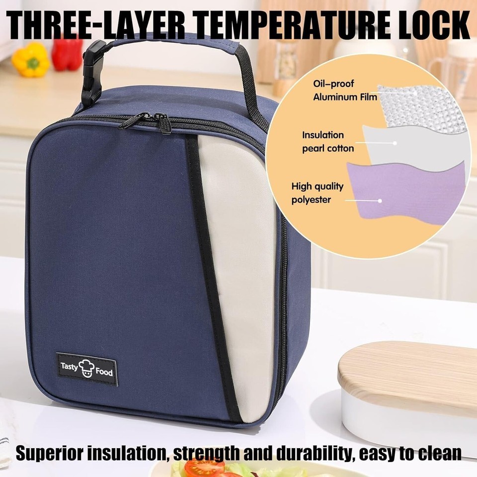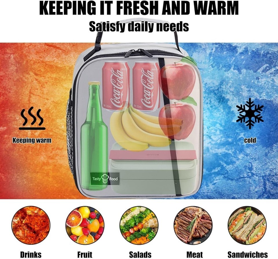 ?QUALITY MATERIAL?This reusable lunch bag has superior insulation, leak-proofing, and durability because it is made of thickened waterproof aluminum foil, and durable Oxford cloth. It will keep food fresh or warm.