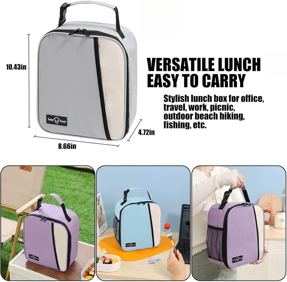 ?COMPACT AND PORTABLE?The insulated lunch bag size: 10.5 8.7 4.8 inches.The handle with a buckle design is easy to carry, you can hang it on your backpack such as gym bag and travel bag for the convenience of going out.