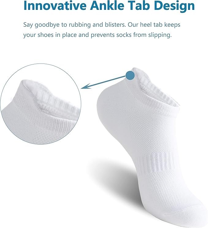 Ultimate Protection and Comfort: Our socks feature a heel tab design that adds both protection and comfort. The elastic band securely holds the sports socks around your ankle, preventing sliding during daily activities like walking, running, cycling, hiking, and tennis.
