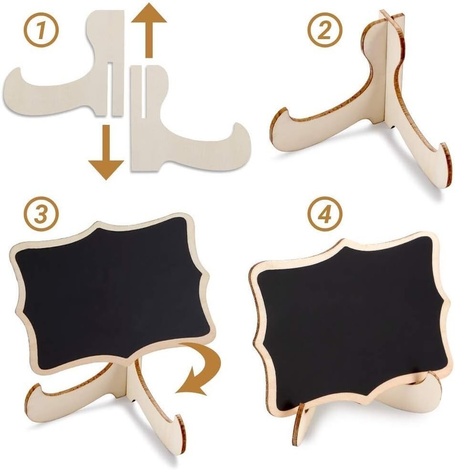 ?? Easy to Write and Erase: 20 small chalkboard labels: 10 mini rectangle chalkboards and 10 fancy polygon chalkboards made of sturdy wood material. Each chalkboard place card comes individually wrapped in plastic to prevent scratching and damage. These small chalkboards with stands are erasable and reusable so they can be used repeatedly after wiping with an eraser or cloth, making them very practical and well worth the money.