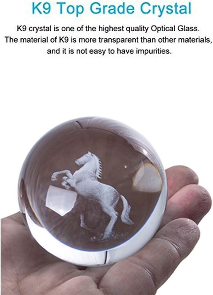??Feature?: This suncatchers ball is beautiful to look at and it is really cool.The crystal ball presents a realistic horse animal inside the glass ball. You can hold the whole crystal ball in your hands.