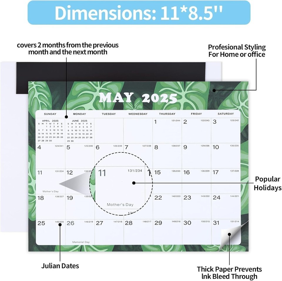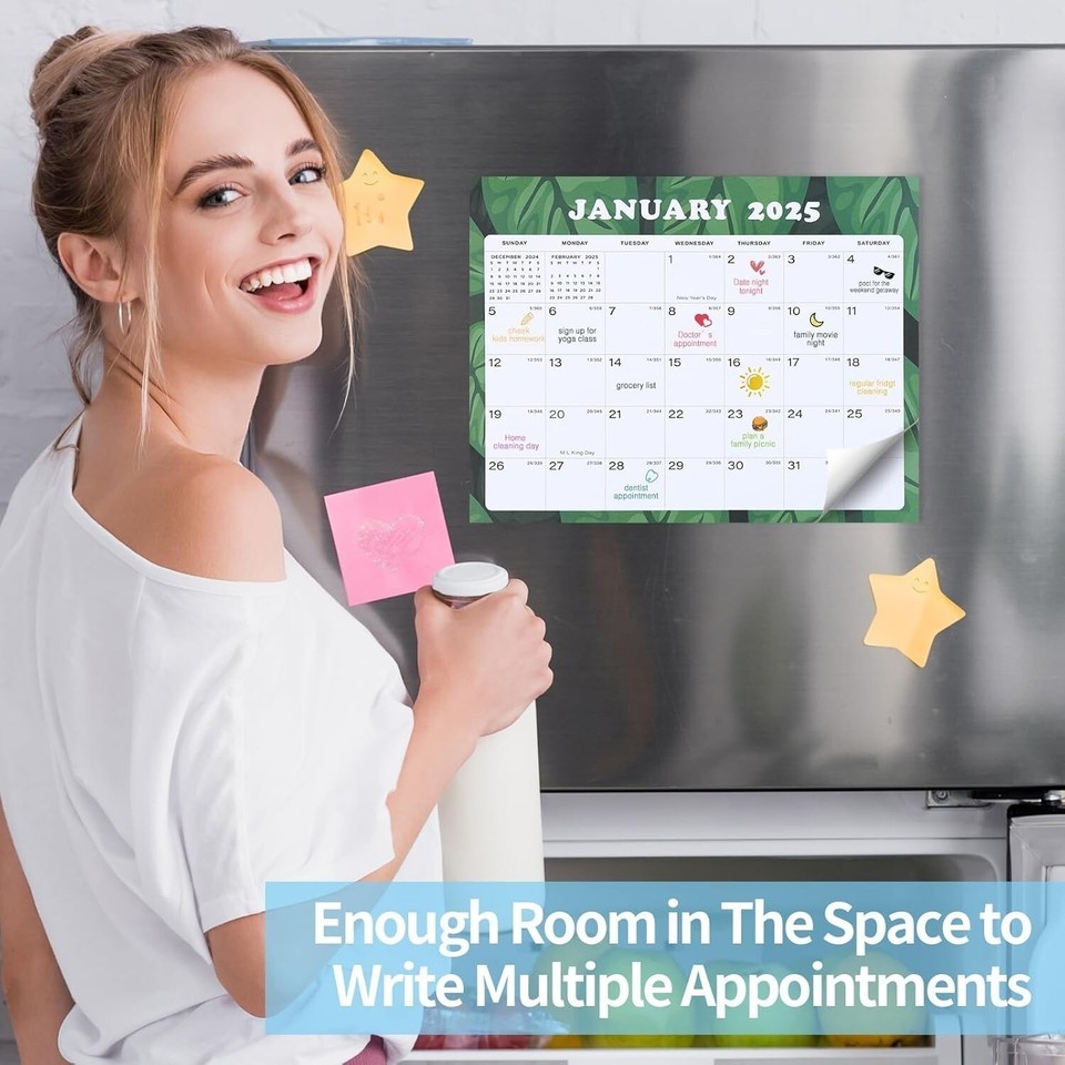 Premium Quality: Crafted from ultra-thick premium paper, our fridge calendar 2024-2025 ensures a hassle-free writing experience without any ink bleed-through issues. Strong magnetism ensures easy attachment to refrigerators and other metal surfaces for easy access to your calendar