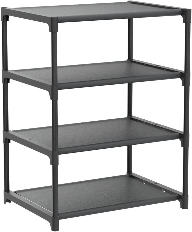 [STACKABLE DESIGN] The small shoe organizer adopts stackable tenon joint design. This thin shoe rack reduces the use of floor space and is ideal for a variety of small places. You can order two 4-tier mini shoe racks, you can stack the black shoe self to a 8-tier shoe rack, as an entry shoe rack or closet shoe rack, or front door shoes.