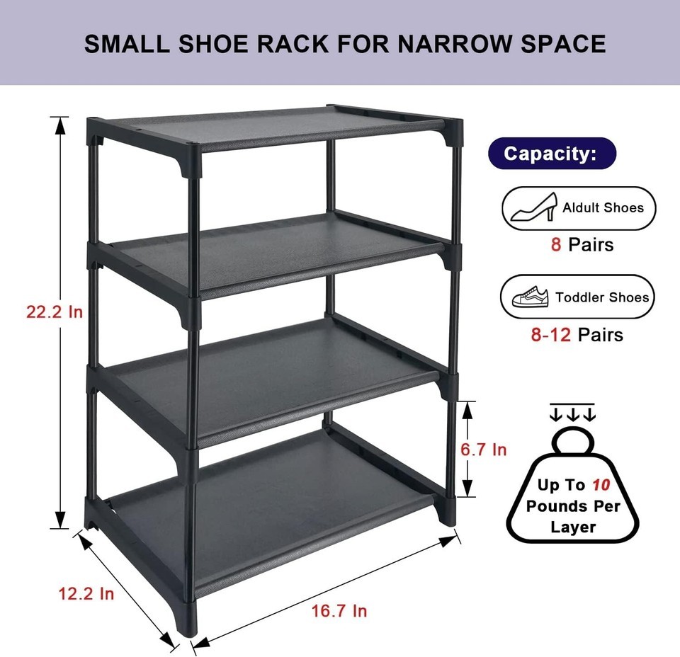 4 Tiers Small Shoe Rack,Narrow Stackable Shoe Shelf Storage 17.7"D x 7.9"W x 22"