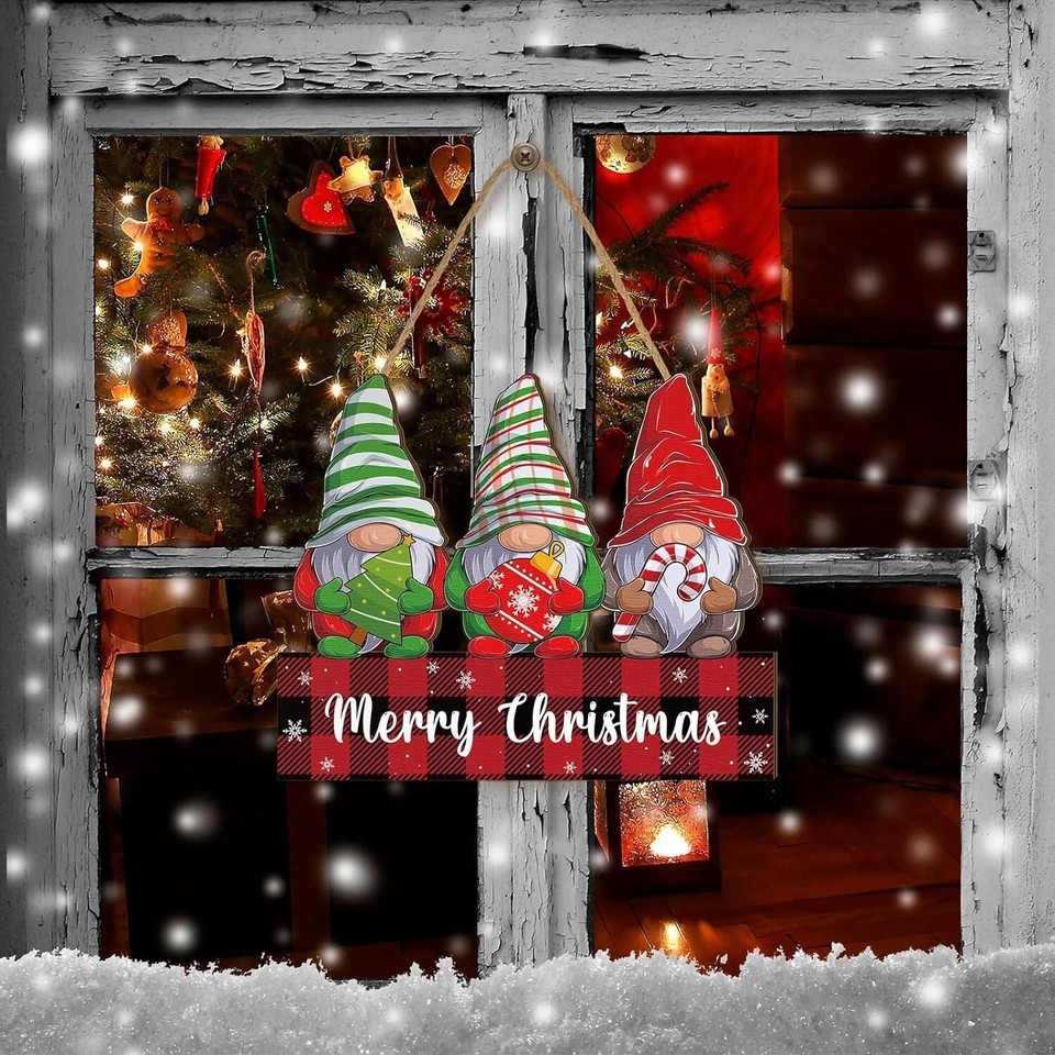 Tradder Merry Christmas Door Sign Decor Christmas Welcome Sign Rustic Gnome